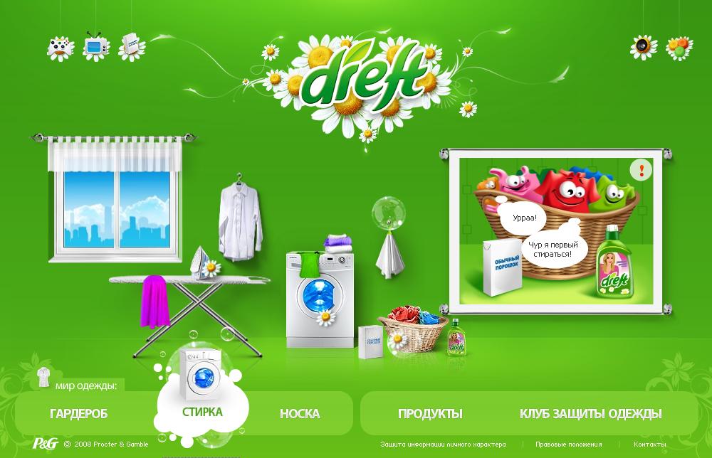 Procter&Gamble борется за права одежды на www.dreft.ruРазрабатывая средство для стирки Dreft Delicates&Color, специалисты компании Procter&Gamble столкнулись с тем, что потребители не всегда знают, что одежде из деликатных тканей (шелка, шерсти, шифона, вискозы) нужен особый уход. Для того, чтобы показать человечеству жизнь деликатной одежды её же глазами, компанией был применен нестандартный маркетинговый ход - создан креативный сайт www.dreft.ru.На страницах сайта платья жалуются на долгое висение на вешалках, свитера - на заломы при складывании, блузки - на тесноту, от которой они могут помяться и т.д. А еще все вместе вещи из деликатной ткани боятся стирки обычным универсальным порошком, который разрушает тонкие волокна их тканей. Предметы гардероба мечтают быть постиранными Dreft. Все потому что жидкий Dreft создан специально для бережного ухода за одеждой. www.dreft.ru получил награду Russian Flash Awards 2008 в номинации "Коммерция", как лучший коммерческий проект. Dreft Delicates&Color содержит уникальный запатентованный компонент Fiberflex, поддерживающий эластичность волокон и предотвращающий потерю формы и цвета деликатной одежды во время стирки. Теперь, стирая вещи Dreft Delicates&Color, Вы можете быть уверены, они не потеряют прежнюю форму и цвет. Ваше бережное отношение к одежде будет вознаграждено ее долгой службой. |