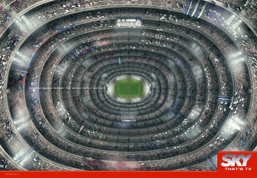 Стадион, вмещающий весь мир, в рекламе телеканала SKYВыиграв в этом году Евро 2008, испанцы доказали, что играют в футбол блестяще и невероятно зрелищно. Поэтому неудивительно, что теперь все футбольные фанаты мира с удовольствием следят за играми Испанской Футбольной Лиги, а помогает им в этом телеканал SKY.Надпись: "Испанская Футбольная Лига. Смотрит весь мир." Агентство: Giovanni + DraftFcb, Сан-Паулу, Бразилия Творческий директор: Adilson Xavier, Ricardo John, Sidney Ara?jo Арт-директор: Tiago Pinho Копирайтер: Guilherme Ach? Арт-байер: ?rika Sartini Иллюстратор: Big Studios |