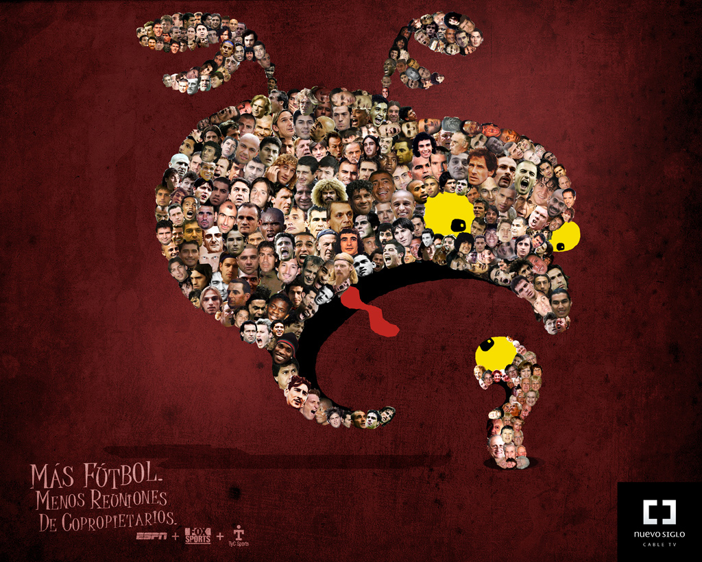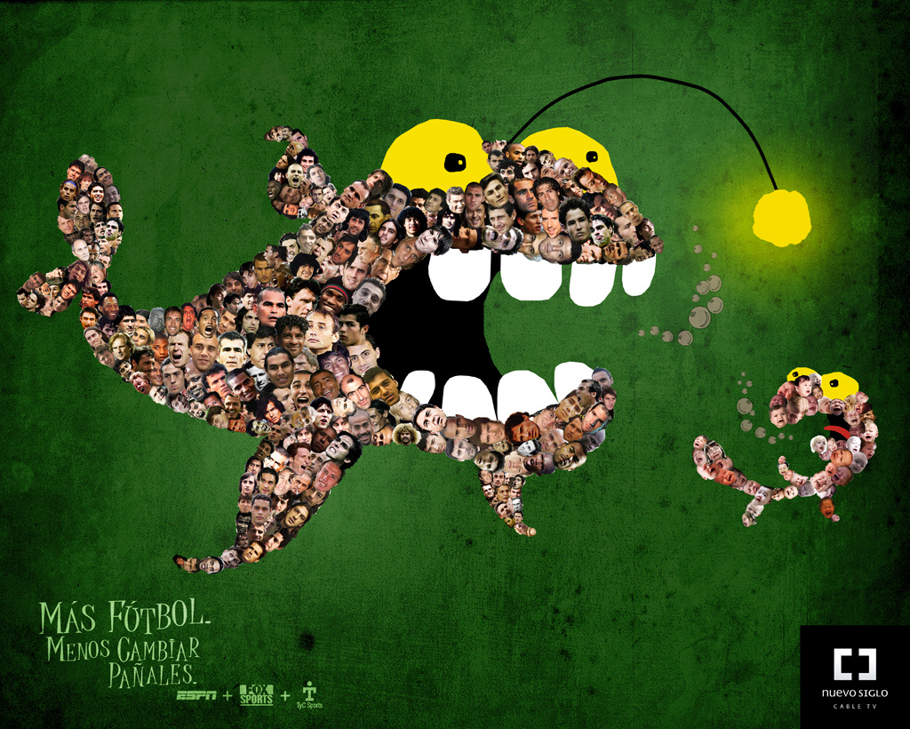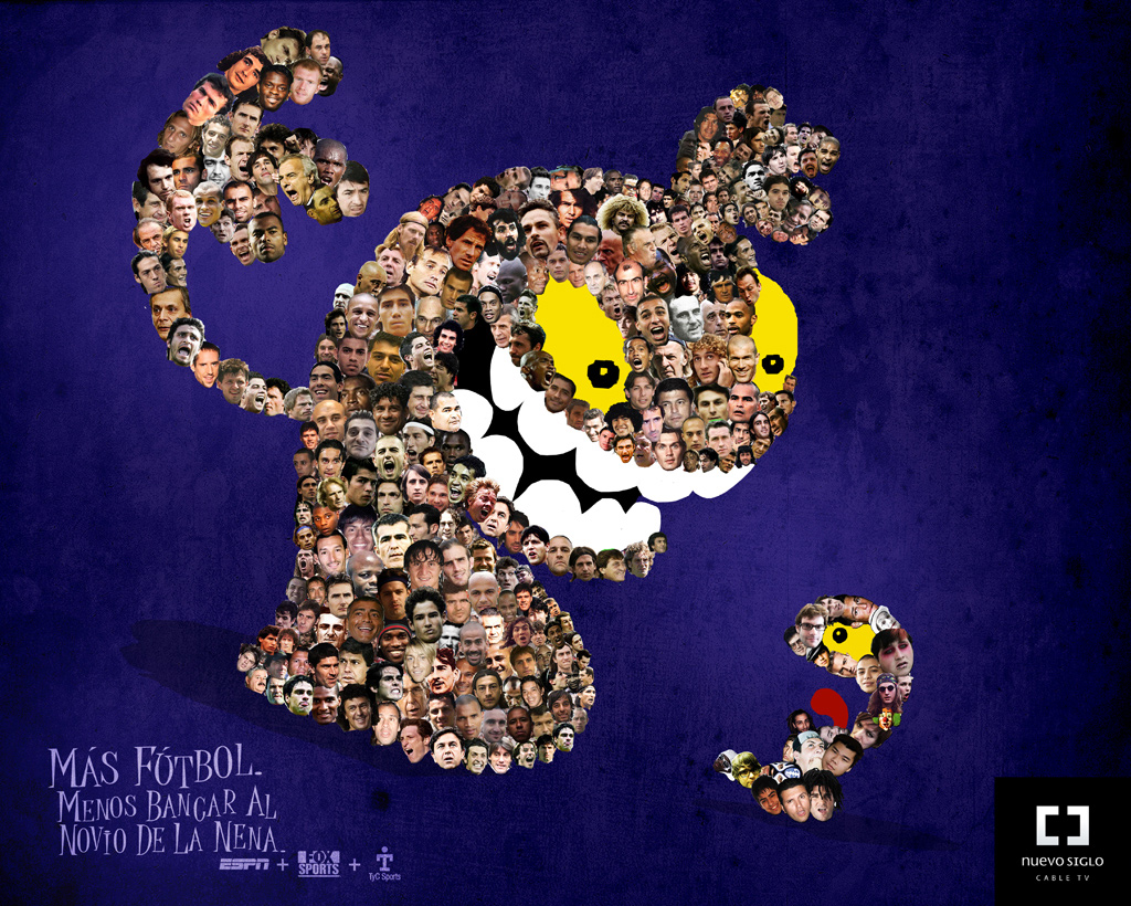 Nuevo Siglo cable TV – когда проблемы отступают перед футболомРекламная кампания Nuevo Siglo, оператора предоставляющего услуги кабельного телевещания, информирует мужчин, да и просто всех любителей футбола о том, что благодаря Nuevo Siglo футбола стало еще больше - 3 популярных спортивных телеканала не оставят вас равнодушными. Больше футбола, меньше встреч с совладельцами Больше футбола, меньше замены грязных пеленок Больше футбола, меньше общения с парнем твоей дочери Агентство: Publicis Impetu, Montevideo, Uruguay |