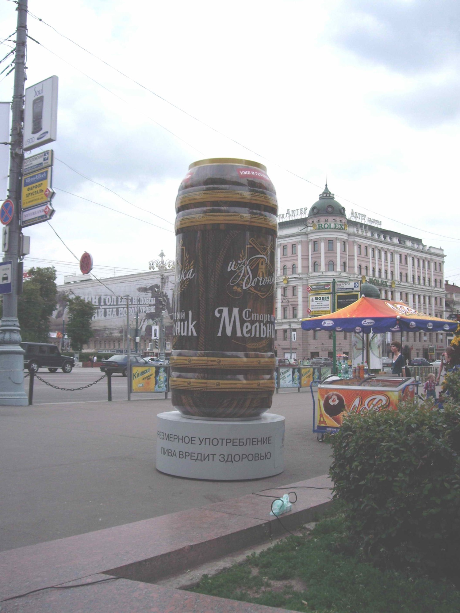 Московский оператор наружной рекламы Altium Media проводит кампанию по размещению нестандартных рекламных конструкций для брэнда "Старый Мельник из бочонка".