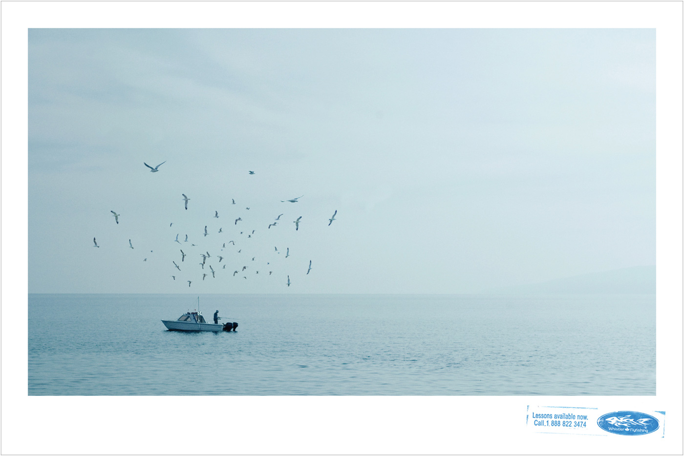 Whistler Flyfishing научит рыбачитьВсем кто мечтал научиться ловить рыбу в таком количестве, как ловит рыболовецкое судно, но не знал, как это сделать приходит на помощь Whistler Flyfishing и РА из Канады Rethink. Кружащие над рыбаком птицы своим видом, а главное количеством, недвусмысленно намекают зрителю об эффективности курсов рыбной ловли от Whistler Flyfishing.Агентство: Rethink, Vancouver, Canada Креативные директора: Chris Staples, Ian Grais Арт директор: Yusong Zhang Копирайтер: Simon Bruyn Ретушь: Tom Pettapiece |