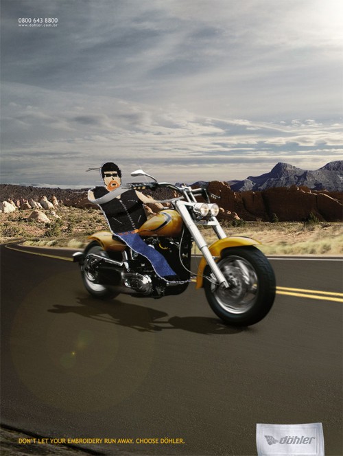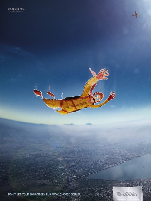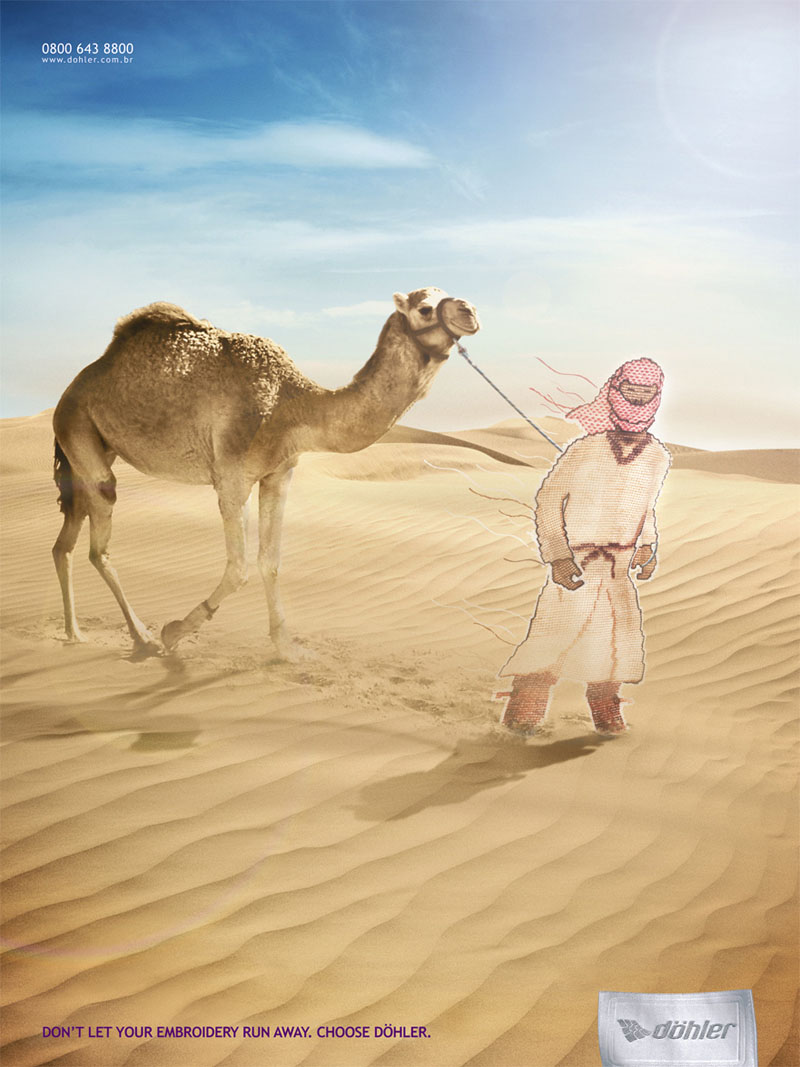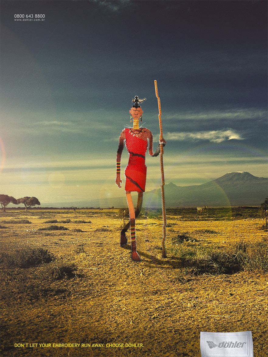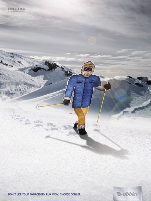 Продукции компании DÖhler сохранит свои потребительские качества и не "сбежит" от вас не зависимо от климатического пояса и температурных условий окружающей среды. Если вы доверились вышивке DÖhler - можете быть уверены, она с вами до конца. Не дайте вышивке убежать. Выберите DÖhler Агентство: D/Araujo, Florianopolis, Brazil Креативный директор: Edu Borges Арт директор: Alexandre Amaral Копирайтер: Igor Becker Фотограф: Jeferson Caldart |