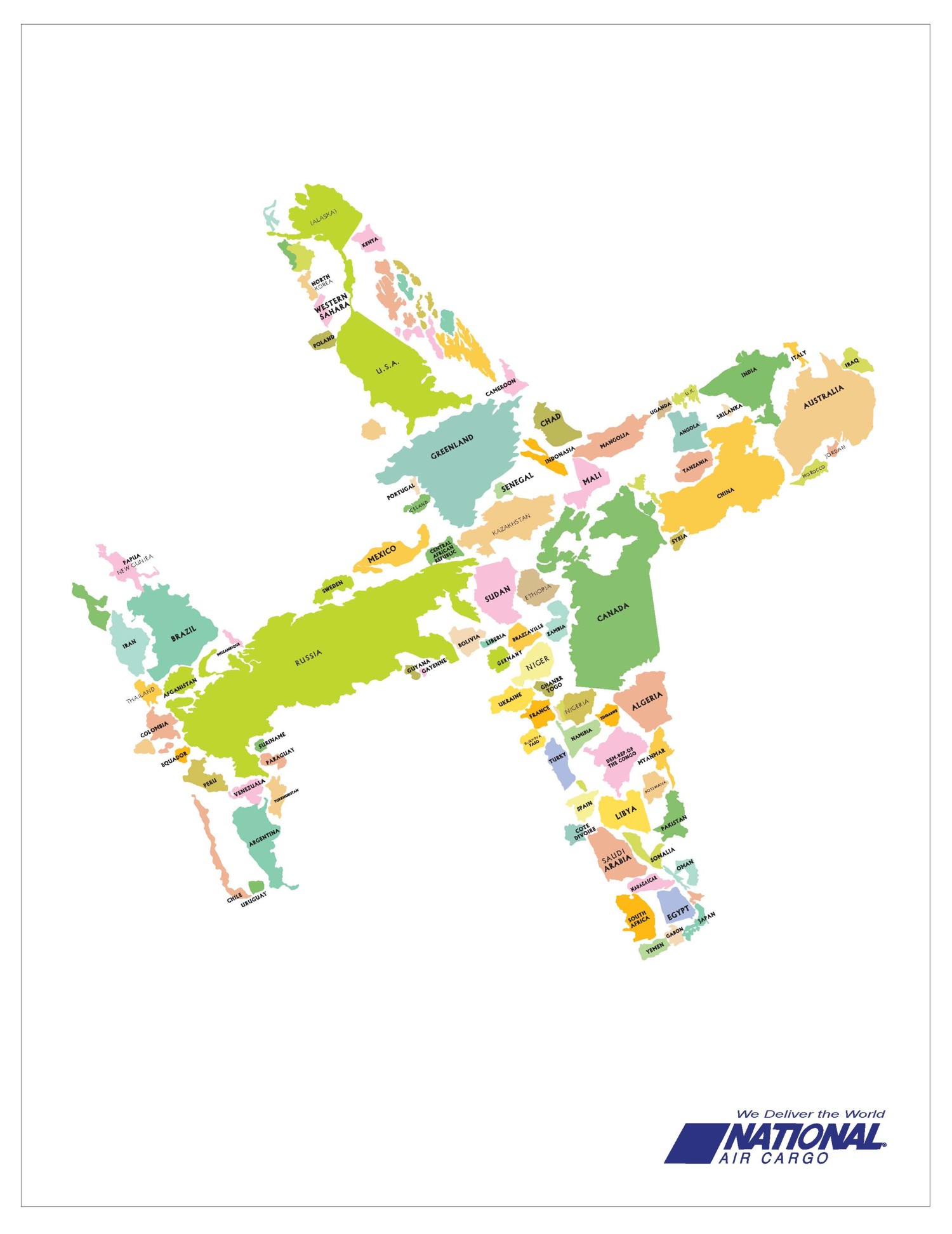 Карта-самолетКомпания National Air Cargo, занимающаяся воздушными грузовыми перевозками, с помощью этого рекламного плаката от индийкого агентства Turrino Advertising, рассказывает своей целевой аудитории, что с ее помощью можно перевезти что угодно и куда угодно.Мы доставляем мир Агентство: Turrino Advertising, Kochi, Kerala, Индия Творческий директор: Vivek Prabhakar Глава творческой группы: Anil Nair Арт-директор: Saseendran N Продюсер агентства: Kiran Dahle |