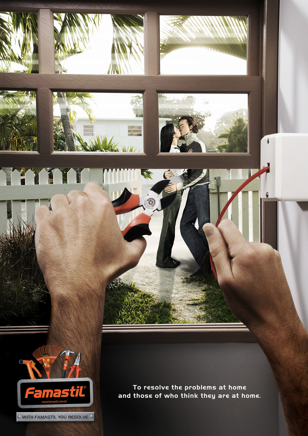 Справиться с тещей поможет набор инструментов FamastilДля решения абсолютно любых проблем связанных с домом и ремонтом лучше всего подходит набор инструментов Famastil. Он не только решает проблемы с забиванием гвоздей и заменой проводки, но и может помочь избавиться от назойливого бойфренда вашей дочери, который возомнил себе, что у вас в гостях он как дома.Агентство: e21, Brazil Креативный директор: Pablo Bohrz Арт директора: Beto Dias, Agnes Cristina, Guilherme De leon, Marton Santos, Gilberto Basualdo Копирайтеры: Matheus Lehembauer, Luciano Sobrosa Иллюстраторы: GRB Фотограф: Lima |