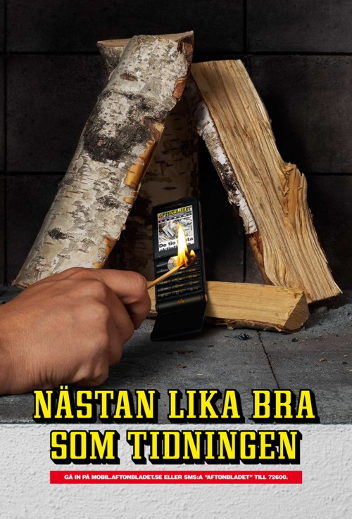 Телефон превратится в бумагу, если в нем появится AftonbladetОдна из самых популярных ежедневных шведских газет Aftonbladet теперь доступна читателям и в качестве версии для мобильных телефонов, которая почти также хороша, как и печатное издание, заявляет с помощью этой кампании стокгольмское рекламное агентство Grand.Почти так же хороша, как и на бумаге. Агентство: Grand, Стокгольм, Швеция Арт-директор: Jorgen Lindqvist Копирайтер: Henrik Levahn Фотограф: Bohman & Sj?strand |