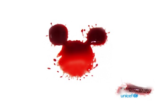 Кровавые пятна превращаются…в Микки Мауса!Общественная организация UNICEF, выступающая в защиту прав детей, и РА из Чили OUT создали кампанию, шокирующую зрителя пятнами крови, которые напоминают диснеевского мультипликационного персонажа Микки Маус. Кровавые пятна и теглайн кампании призваны заставить простого обывателя понять всю важность работы организаций вроде UNICEF.Детские мечты не могут умереть Агентство: OUT, Santiago, Chile Креативный директор: Javier Z?rate Арт директор: Michael Robinson Копирайтер:Javier Z?rate |