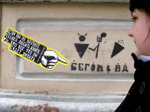 Для поддержки хрестоматии Leo Burnett Moscow придумало необычную кампанию для улиц города. Волонтеры ОГИ и Leo Burnett расклеивают на зданиях и строениях стикеры-стрелки, которые обращают внимание на "шедевры" уличного народного творчества и, одновременно, напоминают родителям, что они не научат ребенка любить книги, то это все, что они будут читать. Кроме того, для проекта созданы интернет-баннеры.