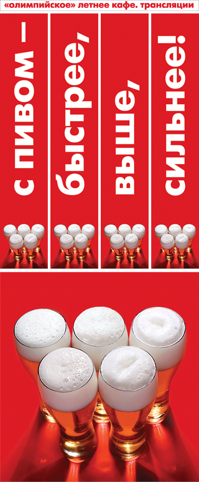 ЛОГВИНDESIGN специализируется на спортивном маркетингеВиртуальная рекламная группа "ЛОГВИНDESIGN", оформила к Олимпиаде 2008 летнее кафе московского ресторана "Метро2". Обнаружив в меню 15 сортов разливного пива многие любители олимпийских телетрансляций вспоминали знаменитую фразу барона Пьера де Кубертена: "Главное не победа, а участие!".Состав творческой группы Арт-директор: Андрей Логвин Дизайнеры: Константин Глухов, Андрей Логвин ![]() |