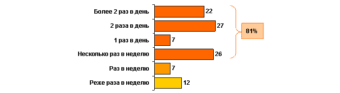 Рекламный носитель PromoboxИсследовательский холдинг Ромир специально для рекламного агентства Highway, эксклюзивного партнера Мосгортранса по размещению рекламы на промобоксах и проездных билетах, провел исследование, посвященное эффективности рекламного носителя promobox - конструкции, размещаемой внутри салонов общественного наземного транспорта. В ходе исследования опрошены 1063 респондента, жители г. Москвы в возрасте старше 17 лет, пользующиеся услугами наземного общественного транспорта. В ходе исследования было установлено, регулярно наземным транспортом пользуются 81% опрошенных. Из них 22% пользуются наземным транспортом более двух раз в день, 27% - дважды в день, 7% - один раз в день и 26% - несколько раз в неделю. Чаще всего общественным наземным транспортом пользуются работающие респонденты. Вопрос: Как часто Вы лично пользуетесь муниципальным наземным транспортом (автобус, троллейбус, трамвай)?, % ![]() Подавляющее большинство пассажиров общественного наземного транспорта из числа респондентов (90%) постоянно проживают в г. Москве. Около половины (52%) участников опроса имеют высшее либо неоконченное высшее образование. 60% опрошенных состоят в браке, 29% имеют детей до 16 лет. Две трети представителей целевой аудитории работают, при этом треть работающих составляют квалифицированные специалисты. 73% пользователей общественного наземного транспорта имеют средний уровень дохода. В ходе исследования изучалась эффективность рекламного устройства – promobox, представляющего собой специальную конструкцию, размещаемую внутри салонов общественного наземного транспорта. Для оценки замеченности нетрадиционного рекламного носителя респондентам предъявлялась карточка с изображением рекламной конструкцией promobox и задавался следующий вопрос: Заметили ли Вы внутри салонов общественного наземного транспорта двухстороннюю рекламную конструкцию, размещенную на уровне глаз?, % ![]() Согласно полученным данным, конструкцию promobox заметили 55% участников опроса. При этом на момент опроса только 37% наземных транспортных средств были оснащены рекламной конструкцией. Чаще всего на promobox обращает внимание молодежь и респонденты, пользующиеся наземным общественным транспортом не реже нескольких раз в неделю. www.rmh.ru |