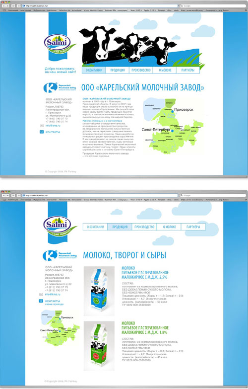 О молоке - строго говоряВ студии рекламного агентства "Fishkey" разработали дизайн упаковки пастеризованного маложирного молока ТМ "Salmi" для Карельского Молочного Завода.Основной продукт завода это мягкие и копченые сыры ТМ "Salmi". Специализация завода - безотходная переработка молока. Лаконичный, строгий, выдержанный дизайн упаковки отражает наиболее важные идеи марки - натуральность и экологичность продукта. В единой стилистике с упаковкой был разработан дизайн сайта. |