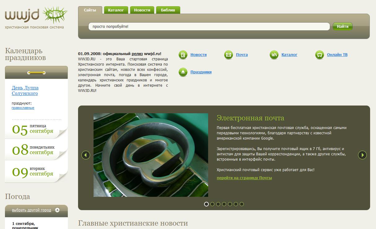 Христос стал ближеВ рунете появился первый христианский поисковикНепросвещенному христианину сочетание букв WWJD покажется загадочным. На самом деле все просто, аббревиатура восходит к англоязычной фразе "What would Jesus do?" ("Что бы сделал Иисус?"). В конце XIX века эти слава стали личным девизом для тысяч христиан в Соединенных Штатах. Возрожденные на платформе ресурса WWJD.ru, они обещают объединить все христианство. В настоящий момент в индексной базе поисковика содержится около двух тысяч сайтов, но уже к концу 2009-го года планируется внести в базу до пятидесяти тысяч ресурсов всех конфессий, что даст возможность охватить весь христианский интернет СНГ и стран Балтии. На сайте можно завести персональную почту с объемом дискового пространства 7 Гб для каждого аккаунта, ознакомиться с каталогом из 12 рубрик, а также с последними новостями, причем предварительно выбрав религиозную принадлежность: православие, католицизм, евангелизм. Напомним, что в России с 2004 года существует православная поисковая система Iskomoe.ru. Практика существования подобных поисковых систем показала, что тематический поисковик потенциально имеет преимущество перед глобальными Google.com или Yandex.ru, благодаря тому, что предоставляет возможность быстрее находить нужную информацию для целевой аудитории. |