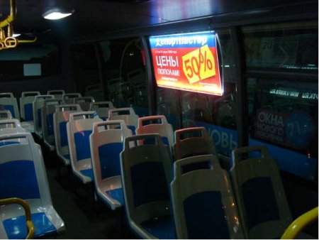 Как рассказал Adlife.spb.ru директор по развитию R8 Corporation Евгений Захаров, световые щиты формата А3 и 1х0,5м, получившие название «маршрутные аншлаги», появятся на пассажирском транспорте средней и высокой вместимости. На сегодняшний день корпорация заключила договор с транспортной компанией ПТК, имеющей в своем распоряжении около 800 таких автобусов.