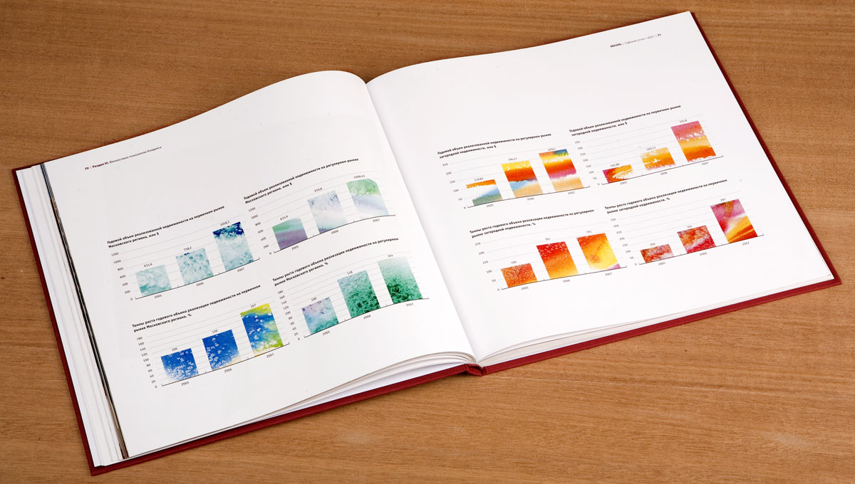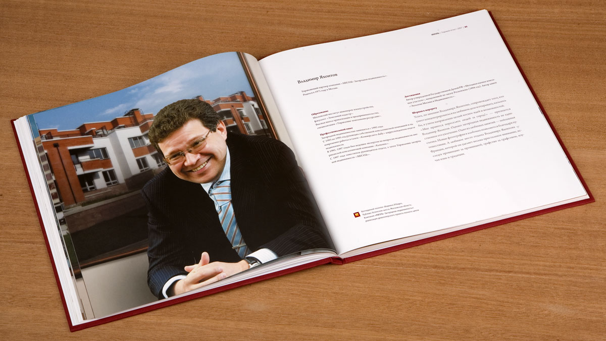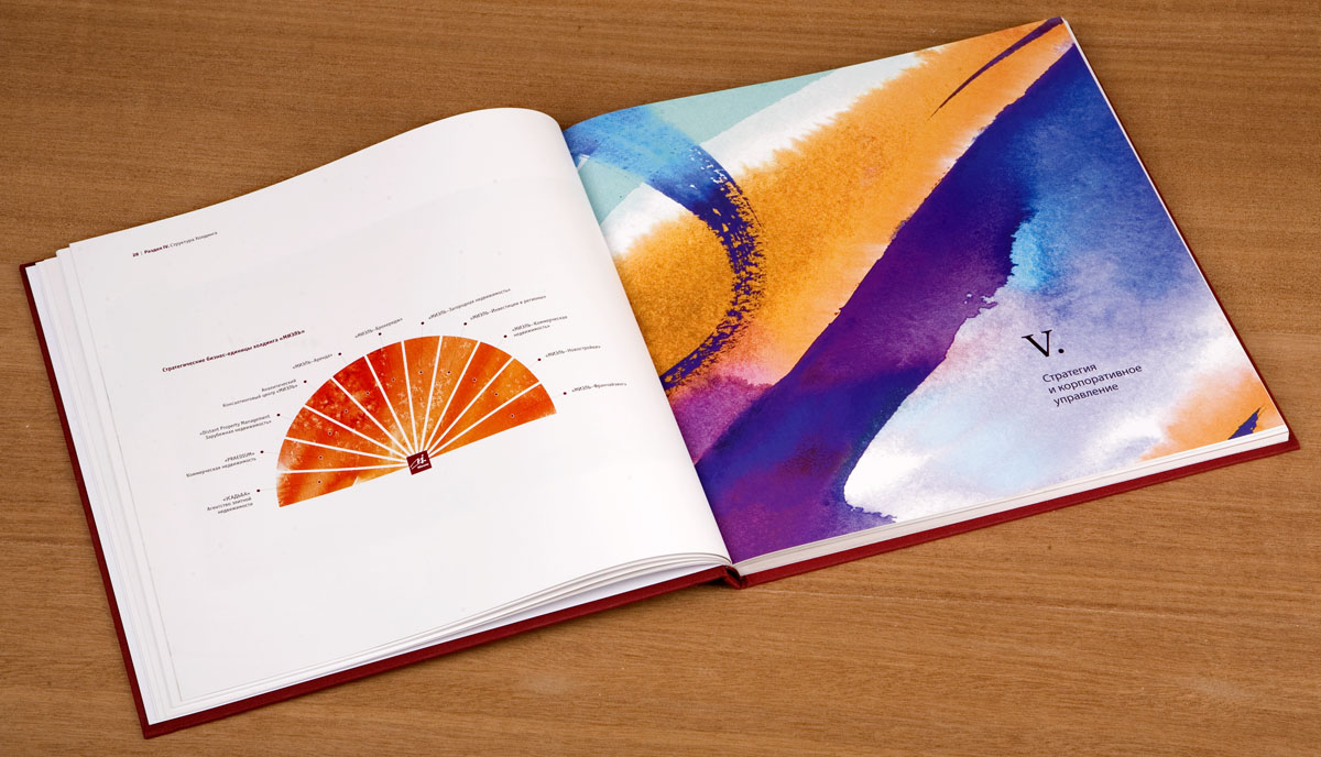 Годовой отчет для холдинга МИЭЛЬ - весь в гуашиСтудия "Желтая собака" подготовила годовой отчет для холдинга "МИЭЛЬ". Для проекта были специально смоделированы интерьеры галерей и инсталляций. Всё вместе, рассказывают в студии, напоминает некий виртуальный тур по экспозиции достижений холдинга.Эту идею оформления дизайнерам подсказал непосредственно слоган компании: "Искусство выбора недвижимости". Таким образом, по технологии исполнения, решению обложки и переплета он выполнен в виде художественного альбома. Шмуцтитулы, предваряющие разделы отчета, напоминают работы художников-абстракционистов. Много пространства, света, оригинальные цветовые решения - всё это создает атмосферу необычной выставки, посвященной успехам компании за прошедший год. |