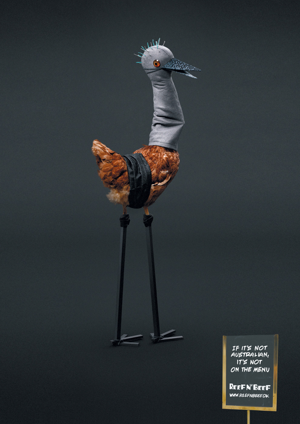 Reef n' Beef - по-настоящему австралийский ресторанРесторан австралийской кухни Reef n' Beef уверяет своих клиентов в том, что в меню заведения нет места никаким другим блюдам кроме австралийских. Кампания ресторана от агентства Saatchi & Saatchi в шутливой форме дополняет теглайн животными, которые благодаря стараниям креаторов из Saatchi & Saatchi превратились в коренных обитателей Австралии.Агентство: Saatchi & Saatchi, Copenhagen, Denmark Креативный директор: Simon Wooller Арт директора: David Ebbesen, Tobias Ambs-Thomsen Копирайтер: Simon Wooller Фотограф: Rebekka Ehlers Пост продакшн: Peter S?nder Hansen, Jesper Gori |