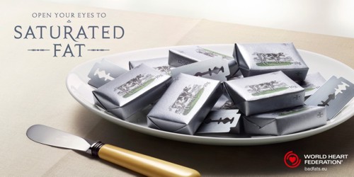 Страшные вещи в защиту сердцаОткрыть глаза на жирную и вредную для сердца пищу попыталось агентство BBH, создав серию принтов для World Heart Federation. Всем известно, что употребление жирной пищи приводит к закупорке артериальных сосудов и сердечно-сосудистым заболеваниям, но на практике отказаться от ежедневного потребления вкусных блюд не так-то просто…BBH предлагает запомнить и учесть на будущее, что за безобидными круассанами прячется большая опасность, а съесть на завтрак кусок масла, это все равно, что полоснуть бритвой по сердцу. Теглайн: "Открой глаза на насыщенные жиры" Агентство: BBH, Лондон, Соединенное королевство Арт директор / Копирайтер: Dave Monk, Matt Waller Фотограф: Peter Lippmann (Carolyn Trayler Agency) |