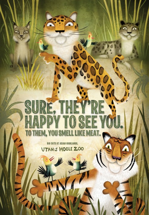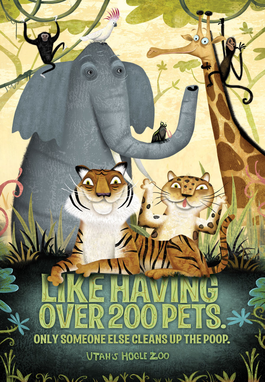 Ребятам о зверятах рассказывает РА Richter7, рекламируя зоопарк Hoggle ZooКампания зоопарка Hoggle Zoo расположенного в американском штате Юта радует зрителей великолепной графикой и не менее великолепным и смелым теглайном, который непременно вызовет у ЦА интерес и желание посетить зоопарк и увидеть более 200 различных животных."Не прыгает, не танцует. Белый аллигатор вернулся." "Это как иметь 200 домашних животных, только убираете за ними не вы, а кто-то другой." "Классно, что зоопарк такое веселое место. Животные могут чувствовать страх." "Конечно, они рады вас видеть, для них вы пахнете как мясо." Агентство: Richter7, USA Креативные директора: Gary Sume, Ryan Anderson Арт директор: Ryan Anderson Копирайтер: Gary Sume Иллюстратор: Michael Slack |
