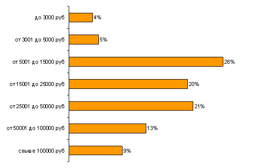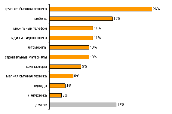 Жизнь взаймы. Почти каждый второй россиянин живет в кредитИсследовательский холдинг Ромир выяснил, на какие цели чаще всего берут кредит россияне, какую сумму, на какой срок и какую часть своего бюджета заемщик тратит на его погашение. В рамках общероссийского Омнибуса опрошено 1500 россиян в возрасте 18 лет и старше. Почти половина россиян брали когда-либо потребительский кредит – об этом заявили 42% опрошенных. Самые активные кредитующиеся – в возрастной категории от 25 до 44 лет: так, среди респондентов в возрасте от 25 до 34 лет брали потребительский кредит 55% опрошенных, а от 35 до 44 лет – 50%. С возрастом количество бравших когда-либо потребительский кредит снижается: среди респондентов старше 60 лет только 23% прибегали к кредитованию. Также чаще берут кредиты респонденты с высоким уровнем дохода – 50% (тогда как среди низкодоходной части респондентов брали кредит 33%), квалифицированные специалисты с высшим образованием – 55%, служащие без высшего образования – 53%. Практически вдвое меньше востребованы кредиты среди студентов - 25% и пенсионеров - 20%. Кредитами пользовался каждый второй респондент, имеющий детей в возрасте до 16 лет (55%), и каждый второй респондент, состоящий в браке (46%). Наиболее распространено потребительское кредитование в Сибирском федеральном округе – там брали кредит 54% опрошенных. Диаграмма 1. Распределение ответов на вопрос «Брали когда-либо Вы или кто-то из членов Вашего домохозяйства потребительский кредит?» Каждый четвертый опрошенный (26%) одалживал у банка сумму от 5001 до 15 000 рублей, каждый пятый (20%) – от 15 001 до 25 000 рублей, либо от 25001 до 50000 рублей (21%). Менее востребованными оказались кредиты на сумму до 3000 рублей (4% опрошенных), от 3001 до 5000 рублей (5%) и свыше 100 000 рублей (9%). Диаграмма 2. Распределение ответов на вопрос «Какова сумма этого потребительского кредита? Если кредитов было несколько, то расскажите о самом последнем кредите». ![]() Большинство респондентов воспользовались заемными средствами для приобретения крупной бытовой техники – 26% опрошенных, на втором месте – покупка мебели (16%), на третьем – покупка мобильного телефона или аудио- и видеотехники (по 11% опрошенных). Каждый десятый брал кредит на покупку автомобиля и строительных материалов (10%). Крупную бытовую технику чаще берут в кредит домохозяйки и временно не работающие респонденты – 41%. Диаграмма 3. Распределение ответов на вопрос «На покупку каких товаров Вы брали этот потребительский кредит?» Каждый четвертый респондент (25%) тратит на выплаты по кредитам от 11 до 15% своего среднемесячного дохода, 22% отдают по 10% дохода, 17% - от 16% до 20%. 3% опрошенных выплачивают в возмещение кредита свыше 50% своего дохода. От четверти до половины своего дохода в возмещение кредита отдают 21% сельчан (против 12% в среднем по выборке). Диаграмма 4. Распределение ответов на вопрос «Какая доля среднемесячного бюджета Вашего домохозяйства расходуется / расходовалась на погашение этого кредита?» Самый популярный срок кредитования – от 7 до 12 месяцев – именно на такой срок брали кредиты 39% опрошенных, на срок от 4 до 6 месяцев брали кредит 17% респондентов, на срок от 13 до 24 месяцев – 15%. Долгосрочный кредит на срок более трех лет брали 12% опрошенных. Диаграмма 5. Распределение ответов на вопрос «На какой срок вы брали этот кредит?»
