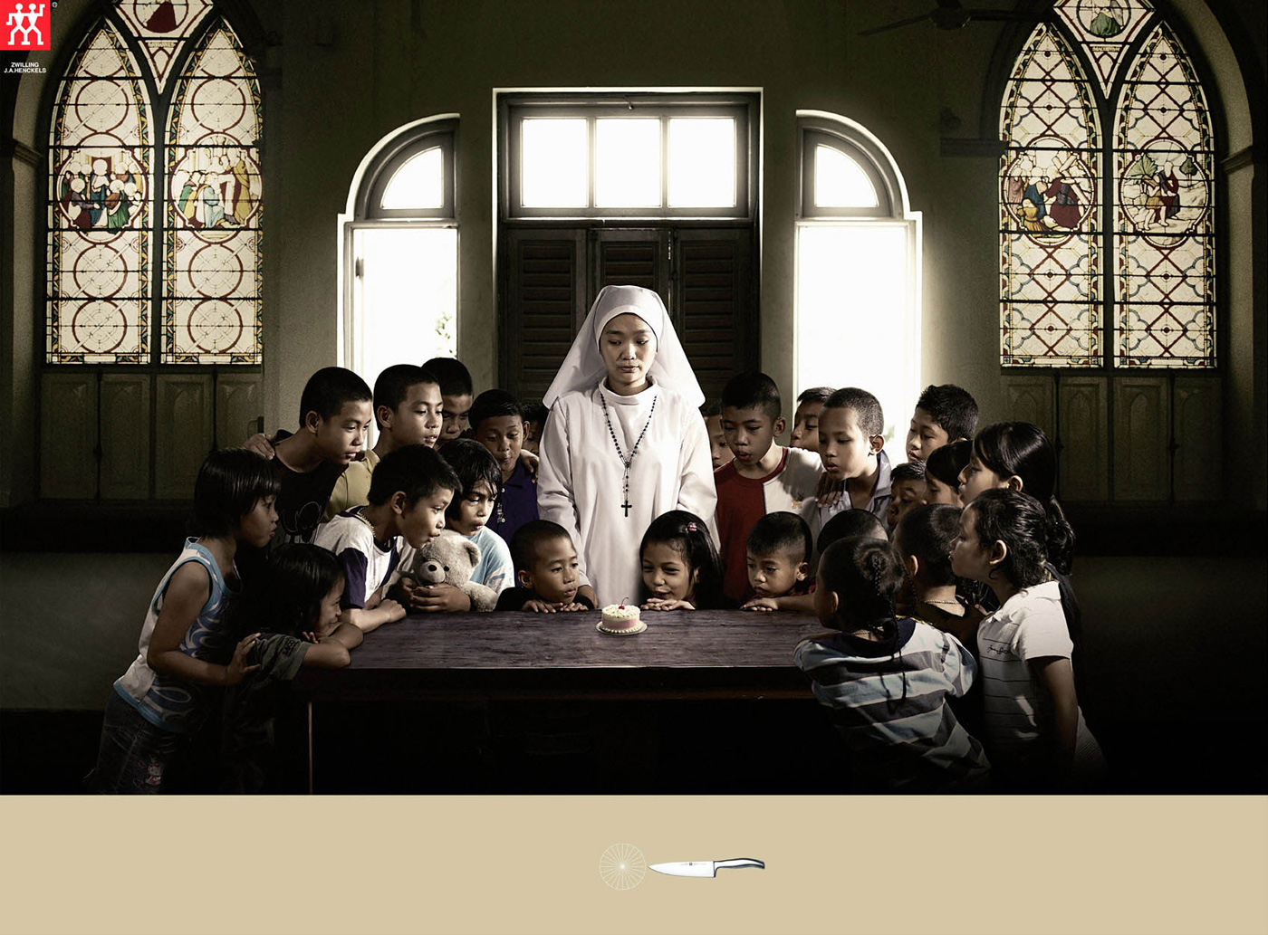 Одним яблоком накормить толпу? Легко, если порезать его ножом ZwillingВопрос: "Как маленьким тортиком накормить толпу детей", терзающий человечество долгие годы - решен! Компанией Zwilling и агентством BBDO выпущена рекламная кампания ножей Zwilling knives, в которой при помощи необычайно острого и тонкого ножа маленькие предметы нарезаются на множество кусков.Агентство: BBDO, Bangkok, Thailand Креативные директора: Vasan Wangpaitoon, Juntiga Nasunee Арт директор: Natee Likitsuwankool Копирайтер: Thanasorn Janekankit Фотограф: Chubcheevit |