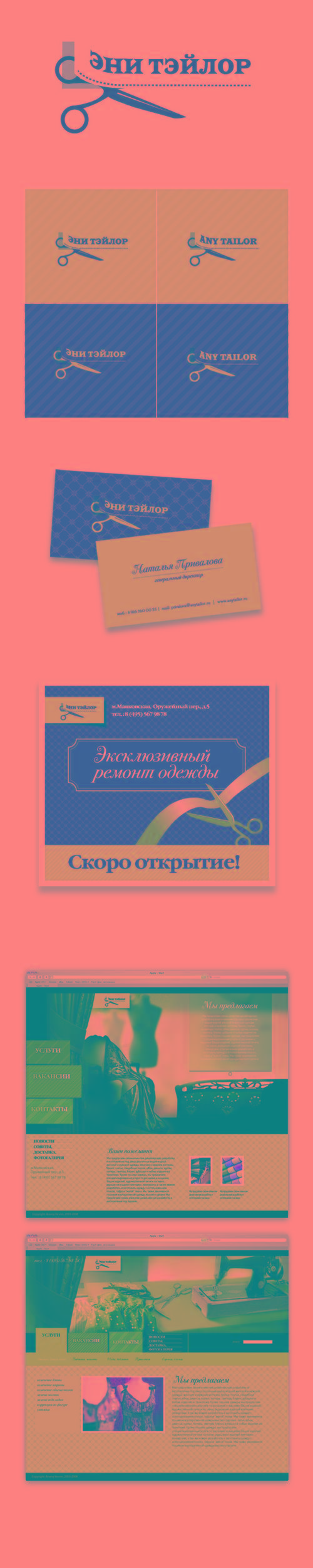 Бренд для портногоРекламным агентством "Симбол/Symbol Communication Group" разработано название и фирменный стиль для новой компании - бутика по ремонту одежды премиум-класса. Главная сложность заключалась в том, чтобы придумать словосочетание, не только сразу говорящее о профиле предприятия, но и указывающее на высокий уровень предоставляемых услуг.У большинства дорогих одежных брендов название состоит из имени и фамилии кутюрье. Люди привыкли к этому и, если слышат о новой марке "Имя Фамилия", автоматически причисляют ее к дорогим брендам. Мы создали название компании по тому же принципу, чтобы оно сразу ассоциировалось с премиум-классом. Название должно быть звучное, вызывающее доверие у клиентов бутика. В итоге выбор остановился на британском "Any Tailor". Tailor - это одна из старейших английских фамилий, которая произошла от названия одноименной профессии - "портной". Кроме того, словосочетание указывает на британскую основательность и богатые традиции. На основании тех же принципов концепции был выполнен и логотип: в нем объединились сразу несколько хорошо узнаваемых образов из области работы с тканью - ножницы, материя, контур кройки. Последний элемент особенно важен, ведь именно он показывает действие и выводит изображение из статического состояния, что придает картинке динамику - основа логотипа, ножницы, как бы двигаются по контуру. Результат работы ножниц - отрезанная и отогнутая полоса ткани. Это придает логотипу объем - простой в исполнении, он производит ощущение трехмерности. ![]() |
