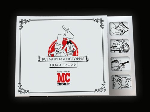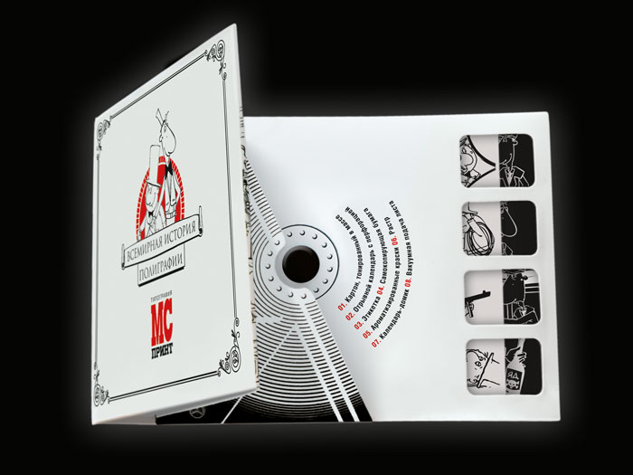 Рекламный сериал "Всемирная история полиграфии" от "МС Принт"Граф и Пол интересно рассказывают о картоне, тонированном м массе и других полиграфических хитростяхВ московской типографии "МС Принт" завершен выпуск рекламного сериала "Всемирная история полиграфии", в который вошли восемь роликов: "Картон, тонированный в массе", "Отрывные календари с перфорацией", "Этикетка", "Самокопирующая бумага", "Ароматизированные краски", "Растр", "Календарь-домик", "Вакуумная подача листа". Сериал задумывался вовсе не как научно-познавательное кино. Авторы отнеслись к сюжетам с юмором, иногда позволяя чуть-чуть перейти за грань общепринятой морали. Местами ролики имеют жесткий эпатажный характер, местами - нейтральный. Некоторые сюжеты основаны на реальных событиях, так, например, ролики про картон, тонированный в массе, и этикетку. При производстве были задействованы основные жанры: комедия, фильм ужасов, эротика, боевик, чёрный юмор. Не обошли авторы своим вниманием и панк- культуру. Бренд-персонажи вышли "из-под пера" художников Светланы Лебедевой и Александры Шустовой. Случилось это в феврале 2008 года. Персонажей придумывали не долго - за основу взяли классическую парочку: один высокий и худой, другой маленького роста и толстый. Таких прообразов в истории было множество, и все были популярными, например, Пат и Паташонок, Тарапунька и Штепсель. Высокий и худой меланхоличен, несколько медлителен, романтик. Толстенький типичный холерик, оптимист, подвижен. В течение сериала герои попадают в различные истории, гибнут, возрождаются, действуют в различных эпохах и при этом каждый раз делают открытия, которые повлияли на развитие мировой полиграфии. Для того, чтобы герои обрели имена, на портале Sostav.ru был объявлен открытый конкурс "Дай имена героям мультсериала", в котором могли принять участие все желающие. Итоги были подведены и объявлены 26 мая В результате высокий получил имя "Граф" а толстый "Пол". Ролики размещены на сайте типографии. Позже они будут записаны на диск и разосланы предполагаемым и существующим клиентам. Упаковка для диска приняла участие в Red Apple 2008 года в номинации "Этикетка и упаковка". Любой желающий житель Москвы может получить данный диск c полноэкранной версией сериала, прислав заявку в произвольной форме на адрес igortulin@yandex.ru
