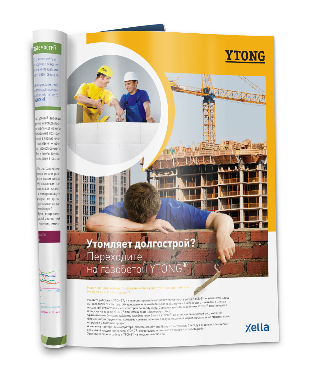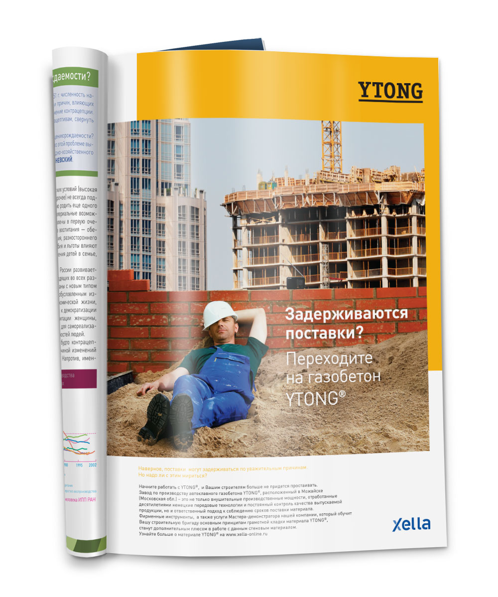 Надо было переходить на YTONGГруппа разработала креативную концепцию для рекламной кампании немецкого газобетона YTONG, производства компании XELLA. Целью коммуникации является вывод газобетона YTONG на строительный рынок России за счет отражения следующих преимуществ: четкие поставки с завода в Подмосковье, открытого в 2008 году, быстрое и легкое строительство, наличие инструментов и обучение работе с материалом у квалифицированного мастера-демонстратора.Для отражения вышеуказанных преимуществ Arabesque предложила продемонстрировать в рекламе последствия несвоевременных поставок материалов и затяжного долгостроя через узнаваемые образы среднестатистических строителей. Кампания проходит под слоганом "Переходите на YTONG". Сотав творческой группы: Креативный директор: Елена Кеслер Арт-директор: Екатерина Воробьева Дизайнеры: Елена Савилова, Вадим Ойкин Руководитель проекта: Ольга Шарикова |