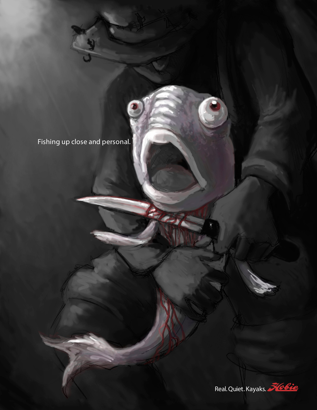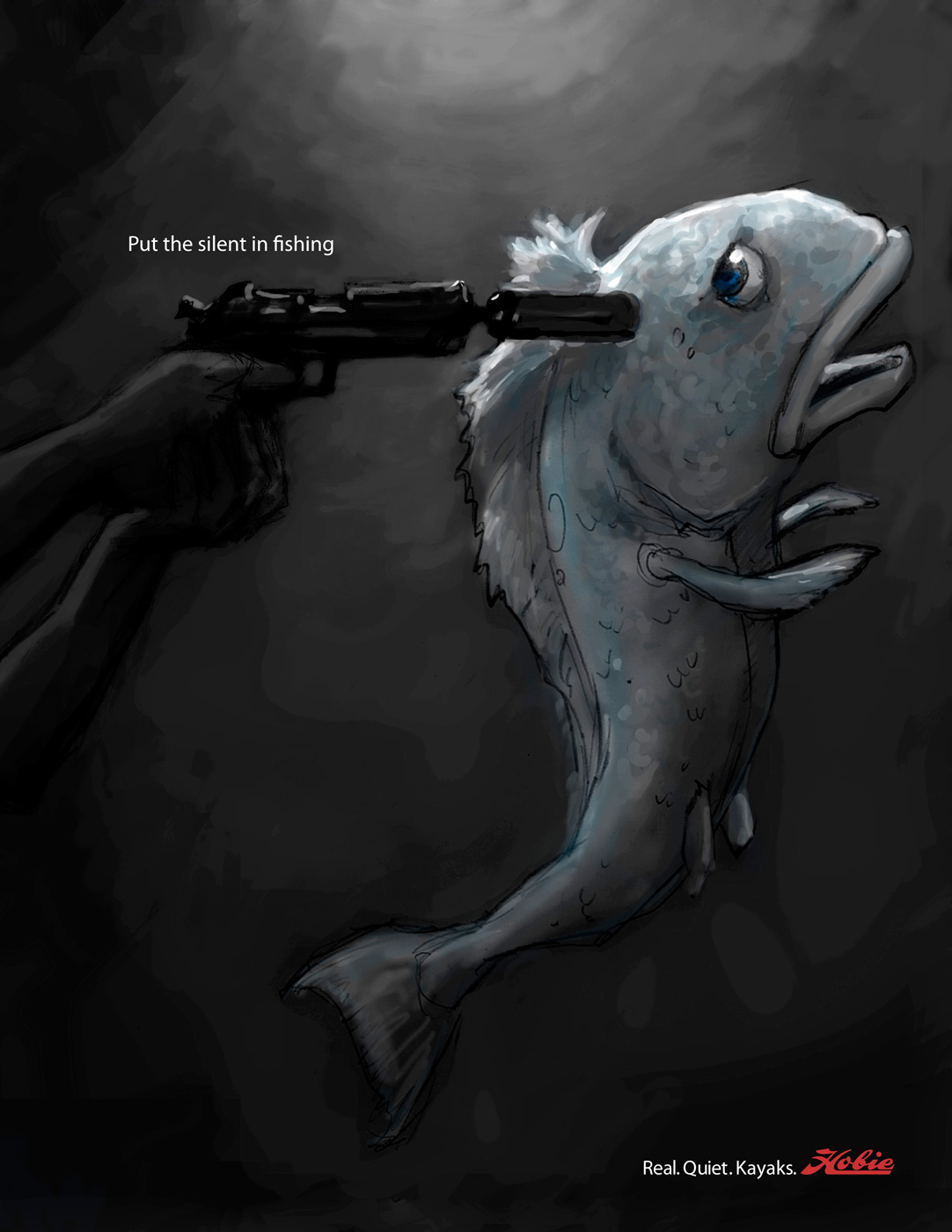 Рыбные киллеры вышли на охоту…Какие только плавсредства не выпускаются под американским брендом Hobie - это и доски для сёрфинга, и яхты, и одноместные каяки, и байдарки, и рыбацкие лодки…Эта рекламная кампания, созданная студентами американской Academy of Art, предназначена для товаров последней категории, т.е. для лодок, спроектированных специально для рыбалки. А ключом к успеху в этом нелегком деле является, как известно, скрытность и тишина. Именно эти качества и есть главное достоинство рыбацких лодок Hobie. Теглайн: "Добавьте к рыбалке тактильные ощущения. Лови рыбу с близкого расстояния и лично. Привнеси в рыбалку тишину". Школа Рекламы: Academy of Art, Сан-Франциско, США Арт-директор: Santiago Fernadez Копирайтер: Tor E Fosberg Иллюстратор: Raya Golden |