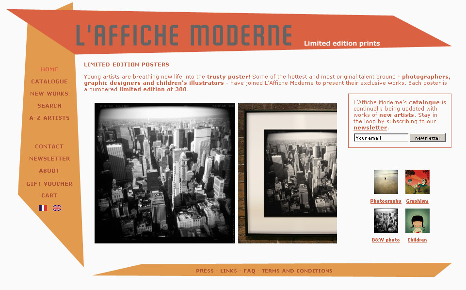 Искусство – в сеть! Французские предприниматели предлагают дизайнерам новую экономическую модельГрафические дизайнеры нередко сетуют, что их работы существуют лишь в двух ипостясях: либо это коммерческий дизайн, приносящий деньги, но производимый под диктатом заказчика. Либо это выставочные, «фестивальные» работы, приносящие призы и моральное удовлетворение – но никак не материальное. Основатели французского интернет-ресурса L’Affiche Moderne решили убить сразу несколько зайцев. Во-первых, уверить дизайнеров, что массовый потребитель их работы знает и любит; во-вторых – уравнять в правах состоявшихся профи и начинающих; в третьих – заработать самим. Собственно, www.laffichemoderne.com – это магазин, где каждый желающий может купить в напечатанном виде постер, понравившийся в виде превьюшки на сайте. Во избежание девальвации ценности дизайнерских шедевров, виртуальные предприниматели подчеркивают, что каждая работа, выставленная на продажу, напечатана тиражом в 300 экземпляров – ни штукой больше.KAK.RU |