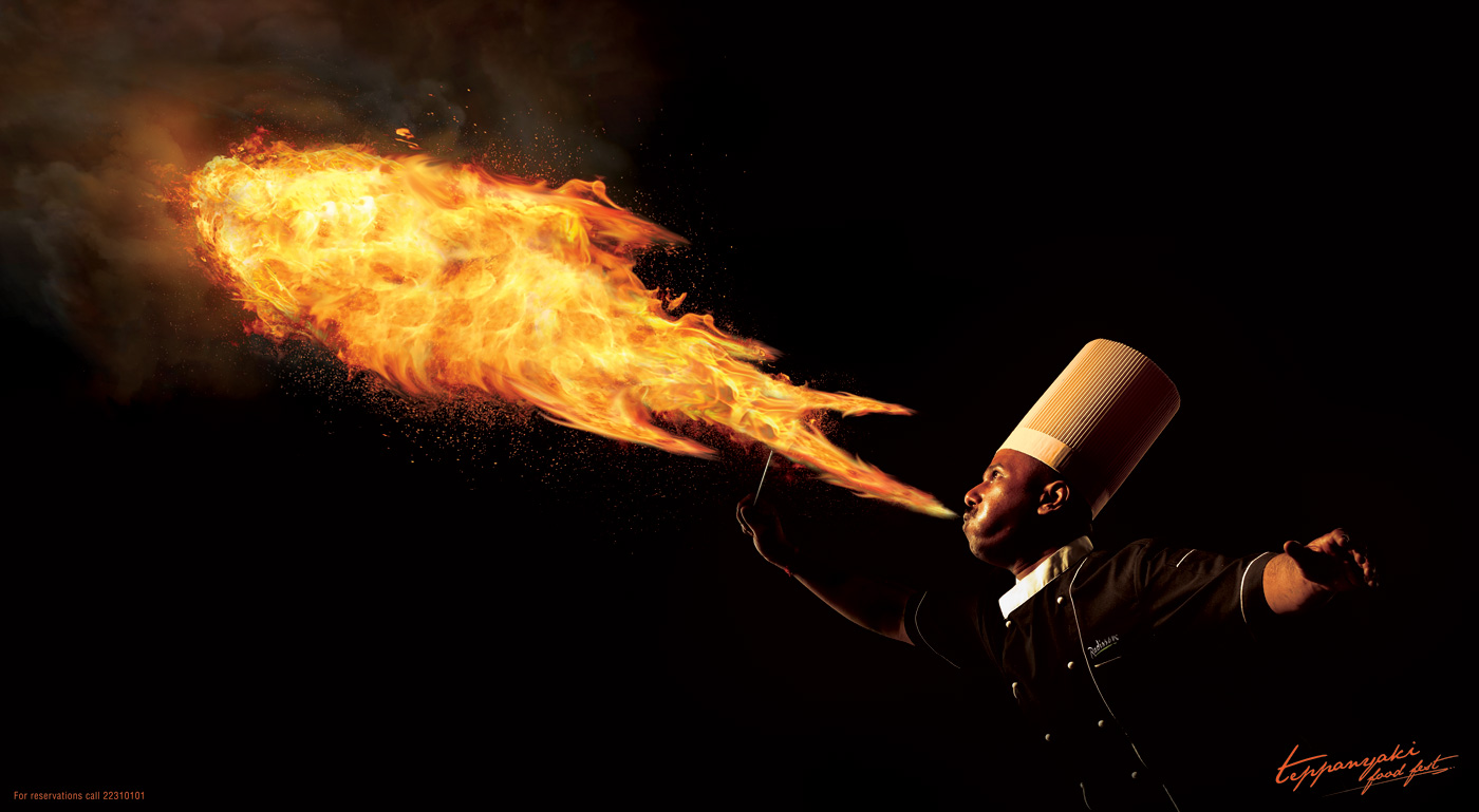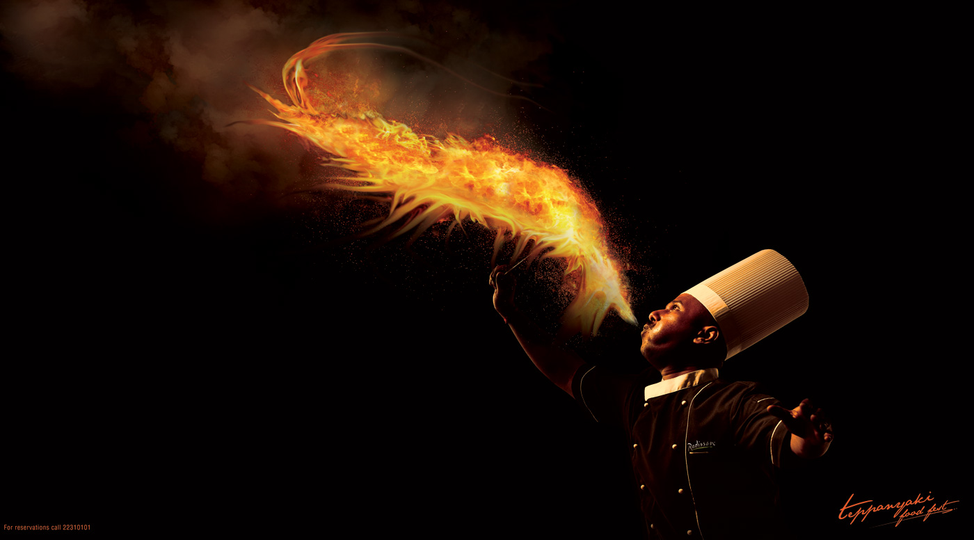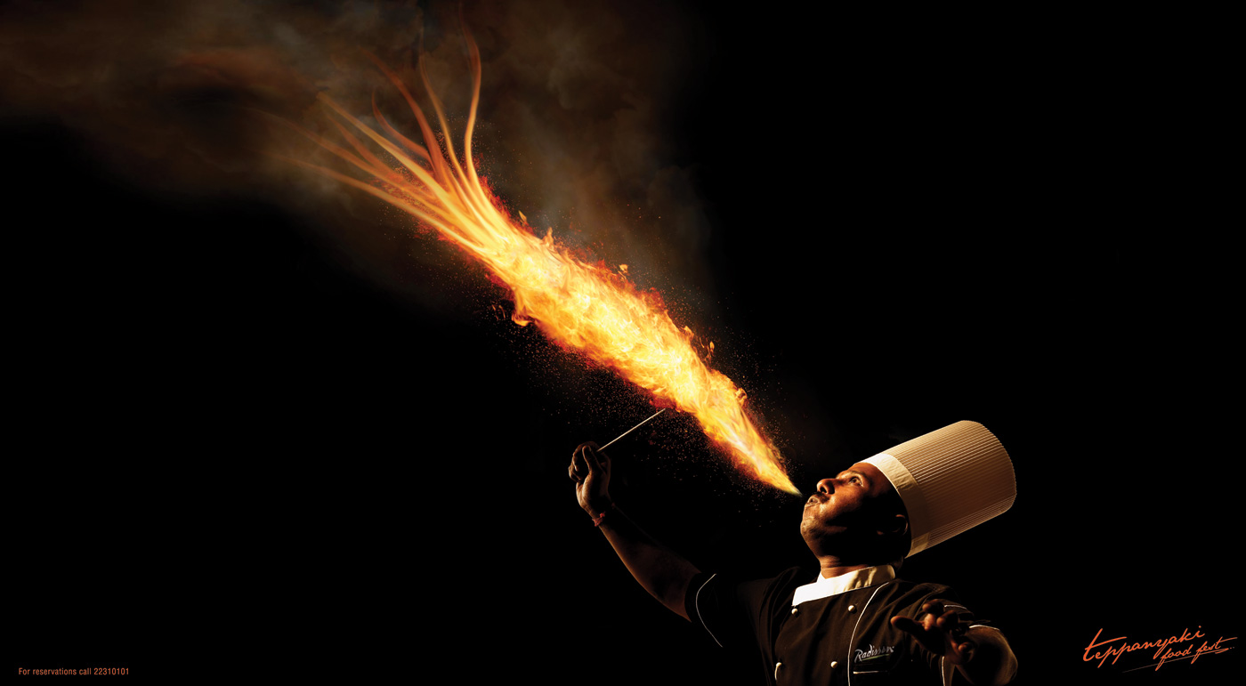 Огненные блюда из RadissonTeppanyaki (теппан-яки) - это особое направление японской кухни, когда такие традиционные ингредиенты, как говядина, свинина, креветки, рыба и разнообразные овощи обжариваются на специальной жарочной поверхности под названием "теппан".Как сообщает рекламное агентство JWT India, индусы в совершенстве овладели секретом теппан-яки и теперь предлагают попробовать особые блюда на фестивале еды в ресторане отеля GRT Radisson в городе Ченнаи. Агентство: JWT India Главный творческий директор: Agnello Dias Исполнительный творческий директор: Senthil Kumar Арт директор: Jeff Emmanuel Копирайтер: Arjun Kumar Цифровая обработка: A P Basker Другое: Vijay Menon |