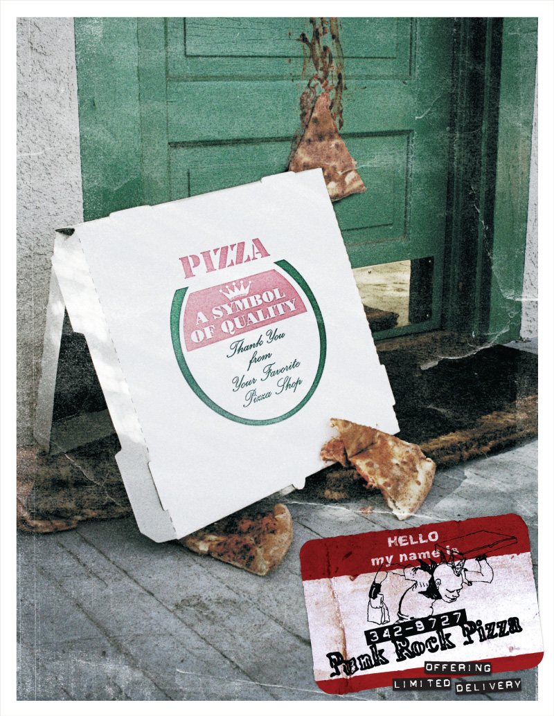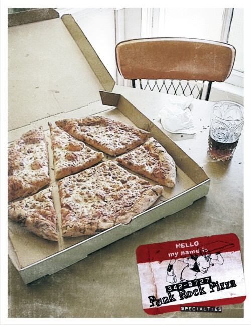 Здравствуйте, я пицца-панк!Креатив от агентства Thielen Designs для Punk Rock Pizza выполнен в стиле присущем этому движению. Анархические звезды и размазанная по дверям пицца, идеально соответствуют духу и общей картине кампании. В конечно счете, глупо было ожидать чего-то другого, это же Punk Rock Pizza - ресторан в стиле панк.Агентство: Thielen Designs, Albuquerque, USA Арт директор: Tony Thielen Копирайтер: Colin Corcoran Фотограф: Nick Tauro Jr. Фото ретушь: Alice Blue |
