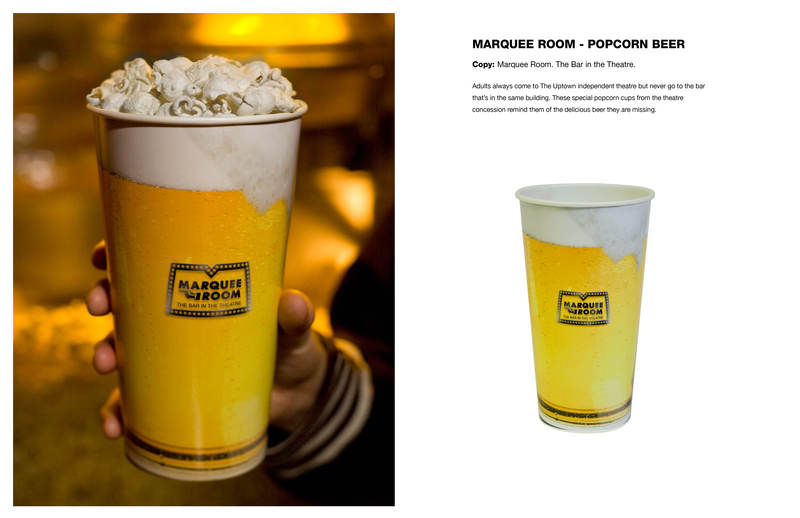 "Пивной" попкорн рекламирует бар Marquee RoomМногие посетители, приходя в канадский кинотеатр Uptown, не подозревают о существовании бара Marquee Room в том же здании. Именно для таких и были созданы специальные "пивные" стаканы для попкорна. Таким образом агентство Highwood Communications напоминает зрителям о том, что существует место, куда они могут зайти после сеанса или вместо него…Клуб Marquee Room взял свое название в честь бывшего владельца здания и остается любимым местом многих музыкантов, демонстрирующих здесь свои таланты… Агентство: Highwood Communications, Калгари, Канада Творческий директор: Rod Honig/Scott Luit Арт-директор: Brian Allen Копирайтер: Andrew Payne |