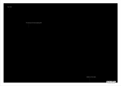 Индийское агентство Rediffusion DY&R в своей рекламе фонарей Eveready решило пойти по стопам южноафриканского DDB Johannesburg и показать насколько бывает сложно сориентироваться в темноте, изобразив то, что может произойти. Прошлая же работа индусов рассказала о «бесконечности» работы батареек этой фирмы. Eveready Industries India Limited является крупнейшим производителем фонарей в Южной Азии и лидером на этом рынке с момента изобретения первых переносных осветительных приборов свыше ста лет назад.