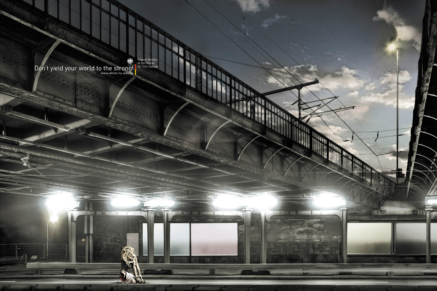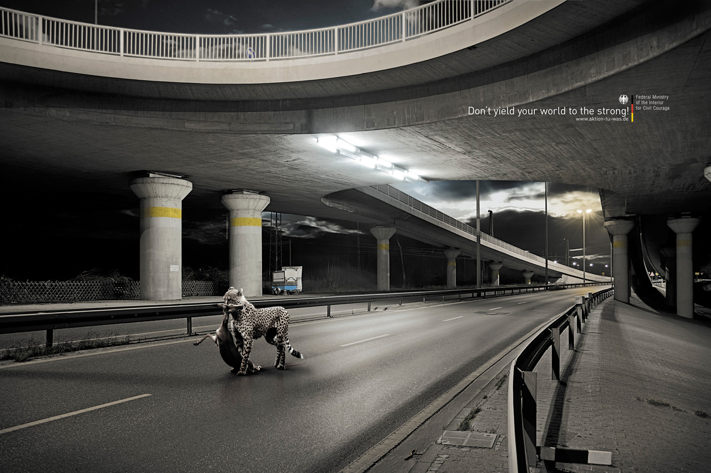 Немецкое МВД обращается к общественности с необычным призывомНемецкое Министерство внутренних дел (Bundesministerium des Innern или сокращенно BМI) ответственно за сохранение и защиту конституционного порядка в стране, защиту гражданских лиц от катастроф и терроризма. Именная эта функция BМI нашла свое отражение в работе креатора из школы рекламы European school of design.Хищники символизируют собой преступные элементы, которыми наполнены ночные улицы крупных городов, а растерзанные жертвы у них в зубах служат для усиления теглайна кампании. Не отдавайте ваш мир в руки сильных Школа рекламы: European school of design, Frankfurt, Germany Креативный директор: Ralph Thamm Идея/Арт/Фотография: Stefan Mildner Копирайтер: Thomas Grabinger |