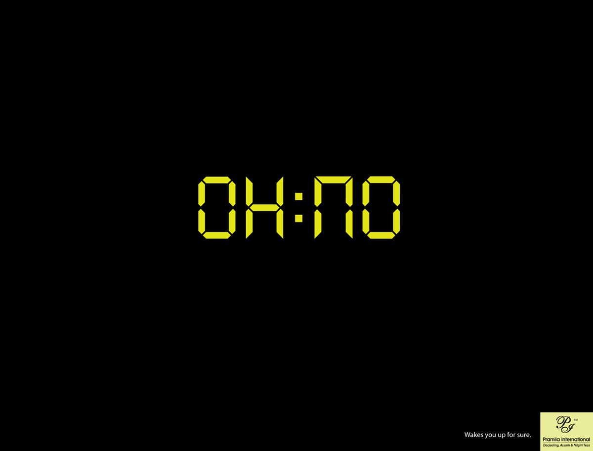 Чай от компании Pramila International сделает то, на что неспособен будильникИндийская чайная кампания Pramila International производит чай, собранный только в самых лучших уголках Индии таких, как Дарджилинг, Нилгири и Ассам. Чаи этой марки обладают настолько богатым вкусом и таким тонизирующим эффектом, что благодаря им утром можно без труда проснуться. Чтобы рассказать об этом ЦА, мумбайское креативное агентство Inter Publicity решило использовать электронные часы, показав, во что превращается циферблат, когда человек понимает, что он проспал.Теглайн: "О, нет! / Дерьмо! / Черт! Разбудит тебя наверняка." Агентство: Inter Publicity, Мумбай, Индия Творческий директор / Арт-директор / Копирайтер: Viren Kamdar |