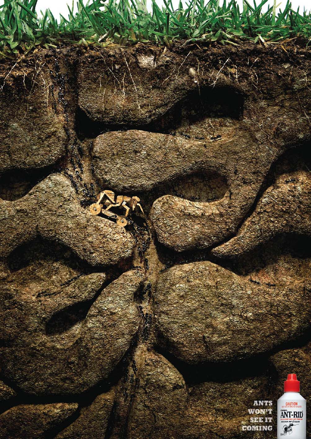 DDB Melbourne обмануло муравьевМуравьи поистине трудолюбивы, но не сильно умны, заявляет австралийское рекламное агентство DDB Melbourne, которое отправило троянского коня в муравейник. А в роли этого коня выступает ни что иное, как средство Ant-Rid, которое так же эффективно, как и 65 лет назад, и выпускается в двух формах.Торговая марка Ant-Rid выпускается под брендом Combat, который в свою очередь принадлежит компании Henkel. В линейке всего 2 продукта: жидкая приманка на основе меда Ant-Rid Liquid и приманка-ловушка Ant-Rid Ant Baits. Теглайн: "Муравьи не поймут, что он уже здесь." Агентство: DDB Melbourne, Австралия Ретушь: Dennis Monk Главный творческий директор: Grant Rutherford Арт-директор: Tamara Yim Копирайтер: Martin Brown Другое: Jade Horton, Anushka Oosterloo |