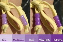 Новинка представляет собой обычное бикини, декорированное бусинами из специального пластика, который меняет цвет в зависимости от интенсивности ультрафиолетового (УФ) излучения. При слабом и умеренном излучении бусины имеют белую или светло-лиловую окраску. Когда интенсивность УФ лучей превышает норму, они становятся темно-лиловыми, предупреждая о том, что сеанс загара пора прекратить.