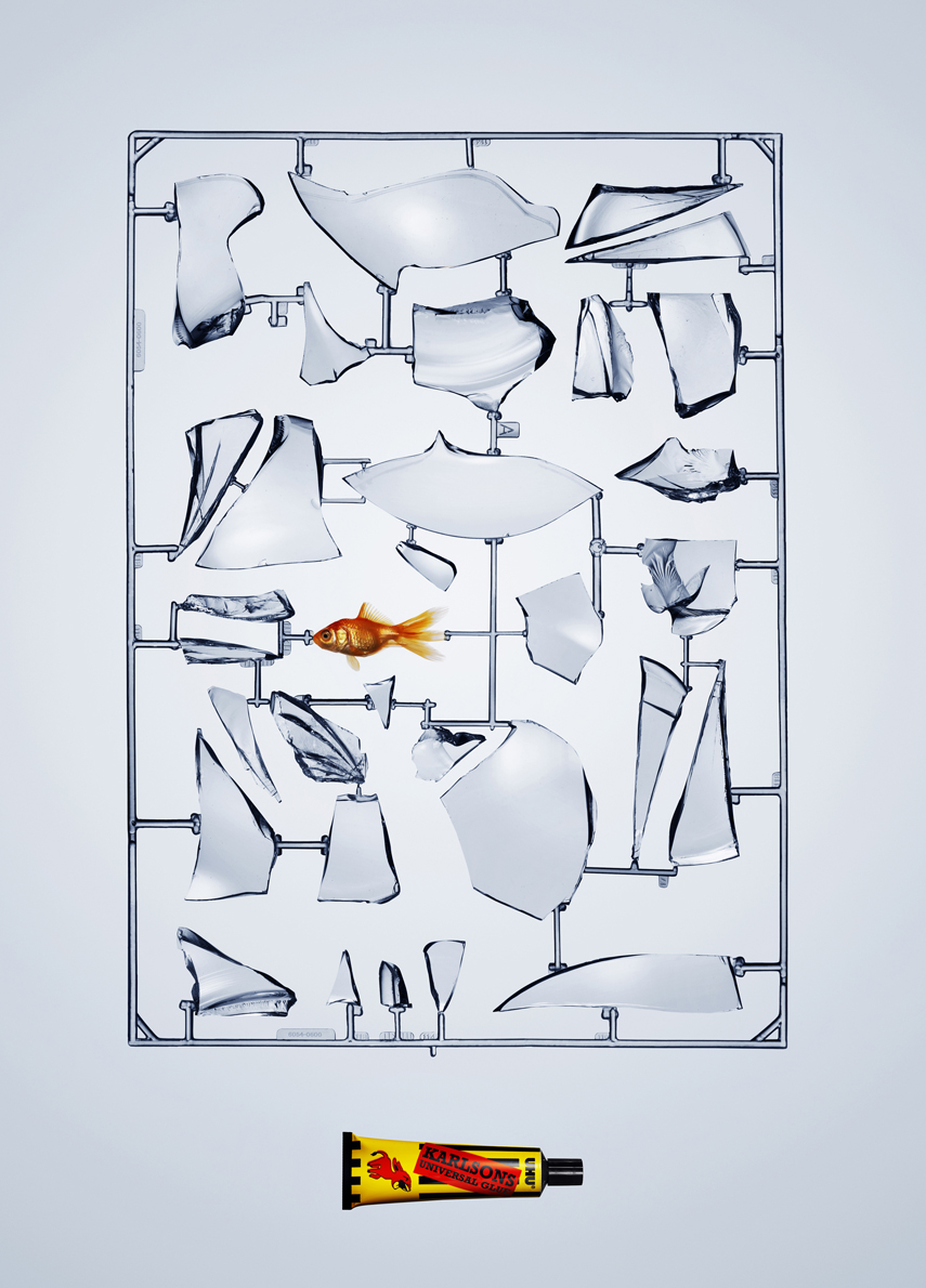 Клей Karlsson: собери аквариум сам!У бразильцев из Dominio Publico Comunicacao и шведов из Storakers McCann возникла одинаковая идея использовать на рекламных принтах пластмассовые модели для склеивания. Вот только первые создали рекламу для американской компании Case Construction, которая производит специальную технику, сравнив лизинговые программы этой компании с процессом сборки модели. А вторые представляют не что иное, как универсальный клей Karlsson, благодаря которому можно собрать разбитый аквариум также легко, как вышеупомянутую модель. Агентство: Storakers McCann, Швеция Арт-директор / Копирайтер: Storakers |