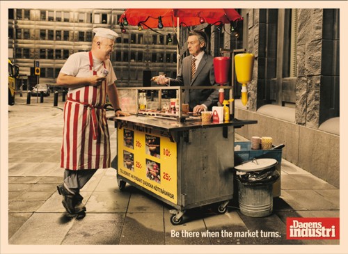 Dagens Industri призывает следить за рынкомНе секрет, что сегодня в мире бушует финансовый кризис и неизвестно, чем обернется для финансистов день грядущий. Однако шведское креативное агентство Storakers McCann с помощью этой рекламной кампании заявляет, что финансовая газета Dagens Industri знает, что будет завтра. Газета Dagens Industri, основанная в 1976 году, является одной из самых популярных и прибыльных ежедневных деловых газет в Швеции, а издается она шведским издательским холдингом Bonnier Group, который ведет свою деятельность во всем мире, в том числе и в России. Теглайн: «Будь там, когда рынок изменится.» Агентство: Storakers McCann, Швеция Арт-директор: Patrik Reuterskiold & Mitte Blomquist Копирайтер: Martin Johansen & Mia Cederberg |
