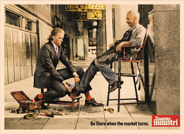 Dagens Industri призывает следить за рынкомНе секрет, что сегодня в мире бушует финансовый кризис и неизвестно, чем обернется для финансистов день грядущий. Однако шведское креативное агентство Storakers McCann с помощью этой рекламной кампании заявляет, что финансовая газета Dagens Industri знает, что будет завтра. Газета Dagens Industri, основанная в 1976 году, является одной из самых популярных и прибыльных ежедневных деловых газет в Швеции, а издается она шведским издательским холдингом Bonnier Group, который ведет свою деятельность во всем мире, в том числе и в России. Теглайн: «Будь там, когда рынок изменится.» Агентство: Storakers McCann, Швеция Арт-директор: Patrik Reuterskiold & Mitte Blomquist Копирайтер: Martin Johansen & Mia Cederberg |
