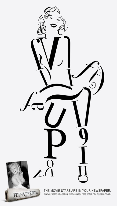 Folha. Шрифтовые игры для рекламы бразильской газетыЛюбой шрифтовой дизайнер знает это полезное и немудреное упражнение – нарисовать что-нибудь с помощью букв.![]() Но дизайнеры дизайнерами, а широкая аудитория, для которой была заготовлена новая рекламная серия газеты Folha De Sao Paulo, наверняка будет приятно удивлена. ![]() Авторы рекламы – бразильское агентство Africa, а иллюстрации практически портретного сходства рисовал Фелипе Гуда (Felipe Guga). ![]() ![]() У газеты Folha довольна богатая рекламная история – тут можно вспомнить и неоднократное участие в «Каннских львах», и скандально-ироничные ролик про бразильских президентов. KAK.RU |