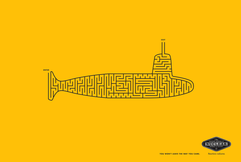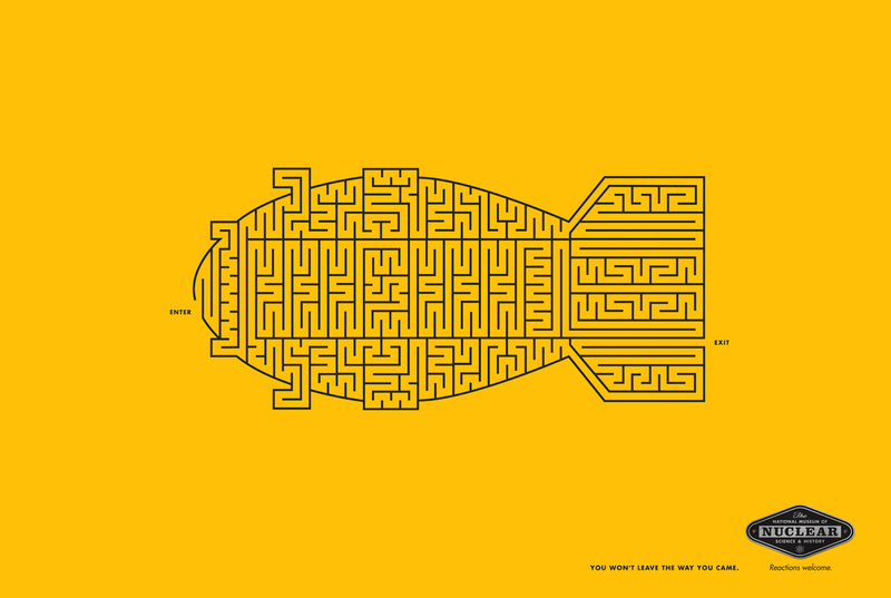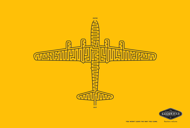 Ядерные лабиринты от агентства 3 AdvertisingДля нового, еще строящегося Национального Музея Ядерной Науки и Истории (National Museum of Nuclear Science & History) американское агентство 3 Advertising разработало серию принтов, на которых исторически важные объекты, связанные с атомной наукой, представлены в виде лабиринтов. Это сам знак радиации, бомбардировщик B-29, сбросивший ядерные бомбы на Хиросиму и Нагасаки, атомная подводная лодка и плутониевая бомба под кодовым названием "Толстяк". Лабиринт символизирует нелегкий путь к достижению научных результатов, о которых люди смогут узнать посетив новый музей.Теглайн: Ты не уйдешь тем путем, которым вошел. Агентство: 3 Advertising, Альбукерке, штат Нью-Мексико, США Творческий директор: Sam Maclay Арт-директор: Tim McGrath Копирайтер: Sam Maclay |