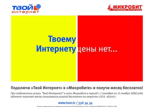 «Телекомпания Санкт-Петербургское кабельное телевидение» совместно с компанией «Микробит» запускают масштабную рекламную акцию «Подключи «Твой интернет» в «Микробите» и получи месяц бесплатно».