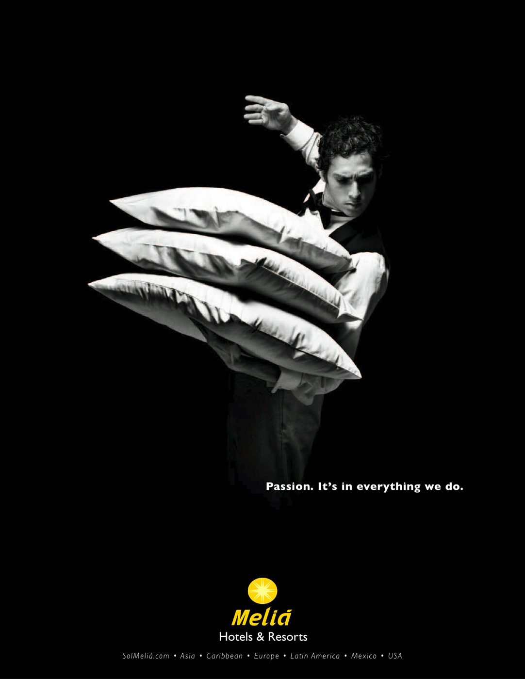 Страсть в отелях Sol MeliaПервый отель Sol Melia был основан Gabriel Escarrer Julia в 1956 году в Palma de Mallorca (Испания). А на сегодняшний момент это одна из крупнейших сетей отелей в мире. В ее состав входит свыше 320 отелей примерно в 30 странах мира. Помимо отелей Sol Melia, Gabriel Escarrer Julia принадлежат так же такие бренды, как Gran Meliа, Meliа Hotels & Resorts, ME by Meliа, Innside, TRYP Hotels, Sol Hotels, Paradisus Resorts и Sol Meliа Vacation Club. Во всех этих заведений стараются угодить каждому клиенту, именно поэтому американское агентство Turkel Advertising постаралось показать с помощью этих принтов, насколько страстно обслуживающий персонал подходит к своему делу.Теглайн: "Страсть. Во всем, что мы делаем." Агентство: Turkel Advertising, Майами, США Творческий директор: Bruce Turkel Арт-директор: Hugo La Torre Копирайтер: Greg Wheeler Фотограф: Cylla Von Tiedemann |