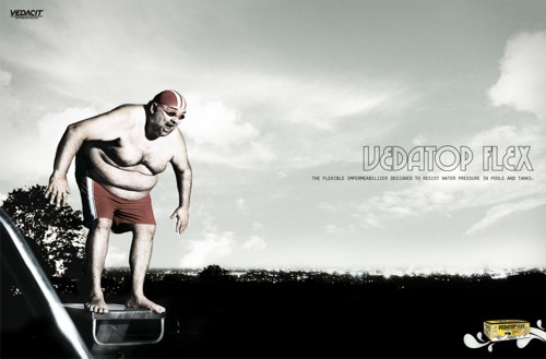 Vedacit выдержит все!Бразильское креативное агентство OCP, создавая рекламу для эластичного герметика Vedatop Flex от Vedacit, задалось вопросом: выдержит ли бассейн, обработанный этой гидроизоляцией, небольшую «бомбу», роль которой выполняет мужчина крупных размеров? Ранее бразильские агентства уже создавали рекламные кампании для продукции Vedacit, рассказывая о влагостойкости этих товаров, а также о тех чудесах архитектуры, которые способны создавать строители благодаря Vedacit. Теглайн: «Vedatop Flex. Эластичный герметик, разработанный специально чтобы выдерживать давление воды в бассейнах и резервуарах.» Агентство: OCP, Салвадор, Бразилия |