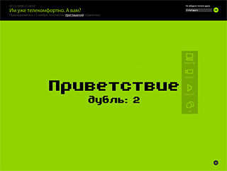 DEFA ждет приход телекомфорта к 1 ноябряDEFA Interaktiv запустила сайт telecomfort.ru, он переносит посетителя в ближайшее будущее: при помощи скрытых камер во всю площадь окна транслируются зарисовки из жизни пользователей услуг нового образца.В обстановке всеобщей секретности вокруг таинственного владельца проекта, сайт с практически отсутствующей функциональностью обещает скорый (к 1 ноября) телекомфорт каждому, кто оставит свой e-mail в форме для получения приглашений. Есть инсайд, что у сайта "двойное дно", и если немного покликать по рабочей области, можно найти некую подсказку, позволяющую узнать о проекте больше и обнаружить скрытый контент. ![]() ![]() ![]() ![]() ![]() ![]() ![]() |