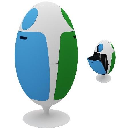 Отходы как предмет гордости. Хай-тек концепт мусорного ведра из ИталииМусорные ведра и блоки для хранения различных технических и пищевых отходов - вещь эстетически неприглядная. Подобный стереотип прочно засел в умах людей; традиционно мусорные мешки и корзины хранятся под раковиной на кухне и в других, недоступных человеческому взгляду местах. Бороться с этим общепринятым расположением мусора решил итальянский промышленный дизайнер Gianluca Soldi, представивший на престижном London Design Festival свое видение корзины для отходов.Этот агрегат, напоминающий то ли яйцо, то ли уменьшенную версию космического корабля можно разместить буквально в любой точке квартиры без потери изысканности пространства. "Яйцо" не только радует глаз своим футуристичным хай-тековским видом, но и функционалом. Созданный, естественно, из переработанных материалов, он имеет несколько отсеков для сортировки мусора - к этому сейчас очень серьезно подходят в Европе. Размеры "яйца" - 45 см в диаметре и 84 см в высоту, выпускается он в двух вариантах - белом и цветном. Самый большой минус этого девайса - цена. Белая модификация обойдется вам в 145 британских фунтов, а цветная - в 150.