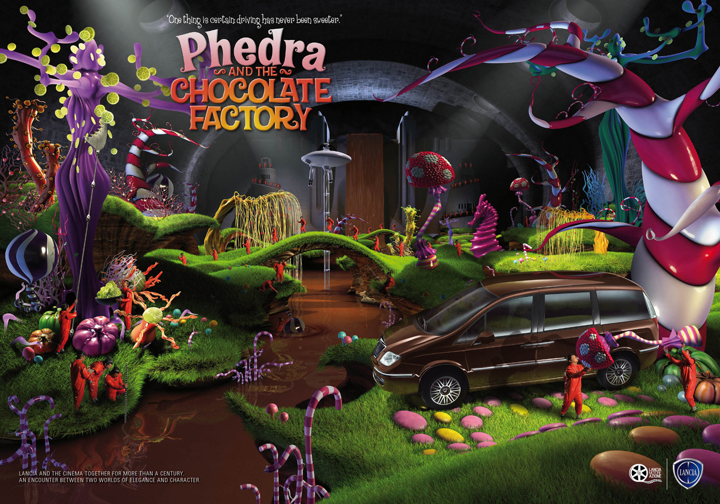 Lancia Phedra - сладкая мечта автомобилистаLancia Phedra - автомобиль, рекламная кампания которого благодаря агентству Armando Testa стилизована под отрывок из фильма "Чарли и шоколадная фабрика". Шоколадная Lancia Phedra и сладкий антураж удачно обыгрывают теглайн и информируют зрителя о тесном сотрудничестве Lancia с кинематографом.В одном можно быть уверенным: управление автомобилем никогда не было слаще Агентство: Armando Testa, Turin, Italy Креативные директора: Michele Mariani, Luca Cortesini, Dario Digeronimo Арт директор: Dario D'Angelo Копирайтер: Gian Armando Testa Иллюстратор: One More |