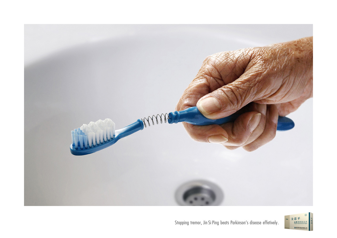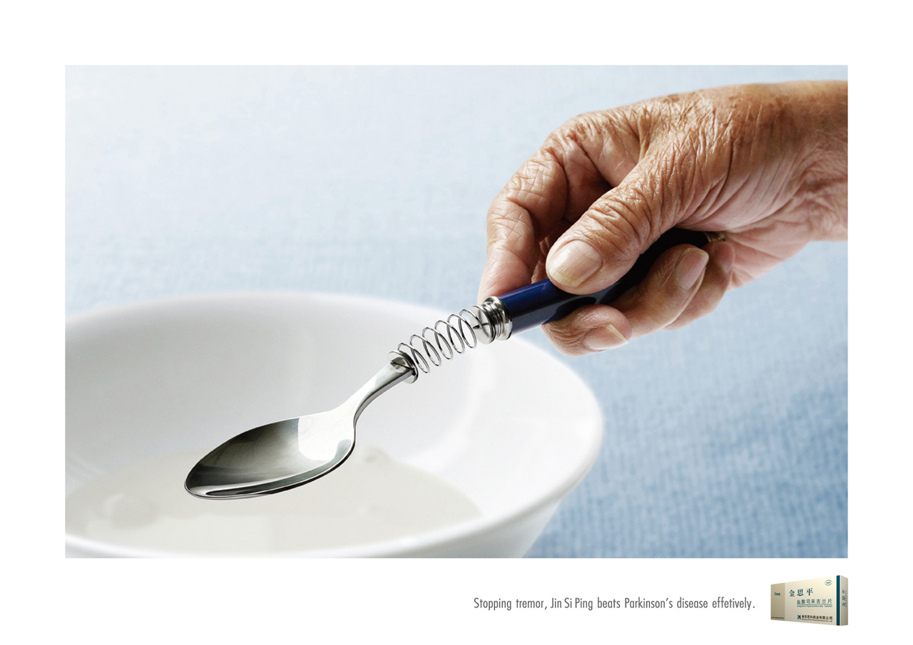 Китайская медицина против болезни ПаркинсонаБолезнь Паркинсона - хроническое заболевание центральной нервной системы, одним из симптомов которого является мелкий тремор. Именно поэтому на этих принтах для Jin Si Ping китайское агентство Euro RSCG Life изобразило ложку, ручку и зубную щетку на пружине…К сожалению, болезнь Паркинсона не зависит от половой и расовой принадлежности, социального положения и места проживания и поэтому может проявиться у каждого. По статистике средний возраст больных - 55 лет, хотя были случаи, когда болезнь развивалась у людей моложе 40 лет. Кстати, среди знаменитостей тоже не мало людей, страдающих болезнью Паркинсона, например: Майкл Джей Фокс, Роберт Земекис и Мохаммед Али. Болезнь на сегодняшний день является неизлечимой, но китайский медицинский препарат Jin Si Ping поможет облегчить ее симптомы, вот только принты умалчивают, что принимать это лекарство придется, скорее всего, всю оставшуюся жизнь… Теглайн: "Останавливая тремор, Jin Si Ping эффективно борется с болезнью Паркинсона." Агентство: Euro RSCG Life, Шанхай, Китай Творческий директор: Jane Huang Арт директор: Handsome Wong Копирайтер: Jane Huang, Dodo Liu Фотограф: Eric Zhang |