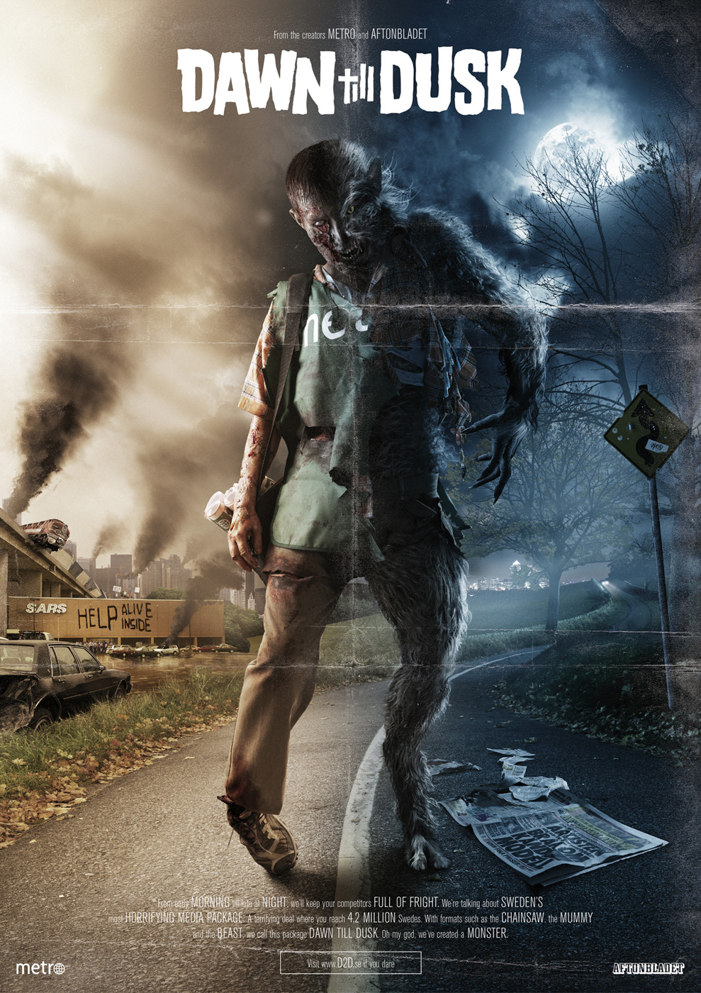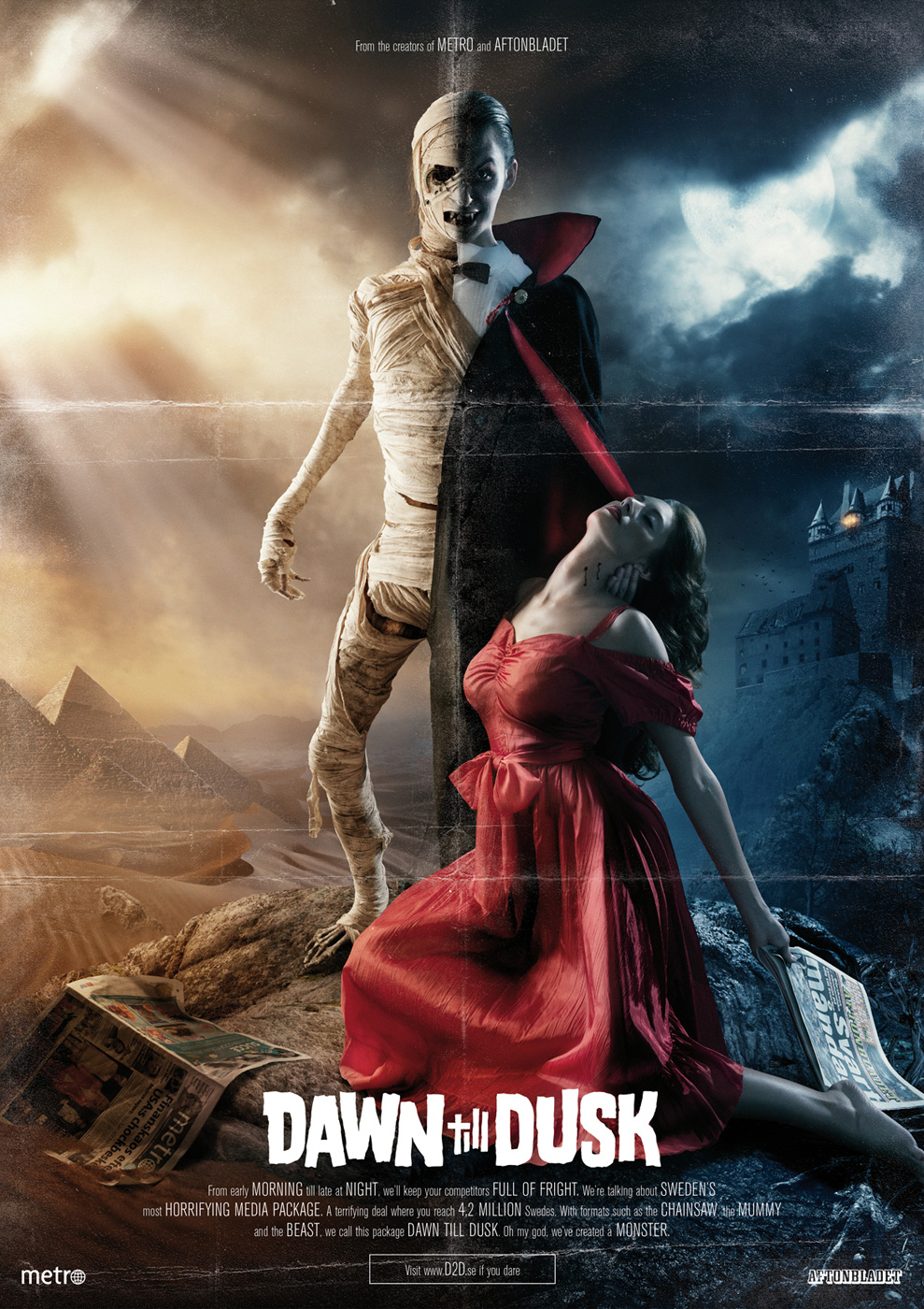 "Он живооойй", - Scholz & Friends рекламируют монстраС утра и до поздней ночи мы заставляем ваших конкурентов дрожать от ужаса. Ведь речь идет о самом ужасающем медиа предложении в Швеции, которое с помощью таких ярких образов как: бензопила, мумия и зверь, позволит вам коснуться умов более чем 4.2 миллиона шведов. Мы зовем его от рассвета до заката (Dawn till Dusk). О, боже - мы создали монстра.Кампания, стилизованная под ретро-афиши фильмов ужасов предлагает зрителям посетить веб-ресурс www.d2d.se, если не страшно, конечно. Агентство: Scholz & Friends Stockholm, Sweden Арт директор: Yasin Lekorchi Креативный директор: Zeke Tastas Копирайтер: Leo Dahlin Иллюстратор: Marcus Lundquist Фотограф: Sven Prim |