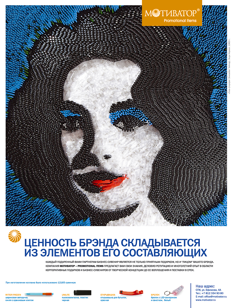 Мотивирующий факторСтудия DEZA создала имиджевую рекламу для компании "Мотиватор. Promotional Items"."Нам было важно представить компанию Мотиватор как предлагающую своим клиентам комплексные и творческие решения в области бизнес-сувениров, ведь именно благодаря подобным решениям в арсенале компаний появляется и действенный маркетинговый инструмент и в равной степени источник радости и позитива от факта вручения каждого подарка, - рассказывают в Deza. - А так как лучшее подтверждение любого утверждения - продемонстрировать его наглядно, мы вооружились 19 420 сувенирами и сложили из них известные мировые шедевры, визуализировав тем самым слоган рекламной кампании "Ценность бренда складывается из элементов его составляющих". Состав творческой группы Креативный директор: Александр Суворов Арт-директор: Данил Ярцев Создание документального ролика: Алексей Русаков, Максим Коваленко Сотрудники и друзья студии, неравнодушные к сувенирам и мировым шедеврам. |