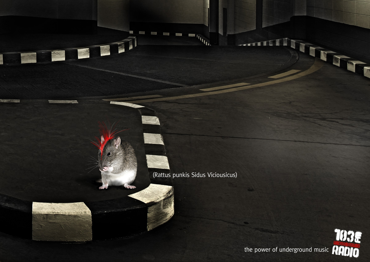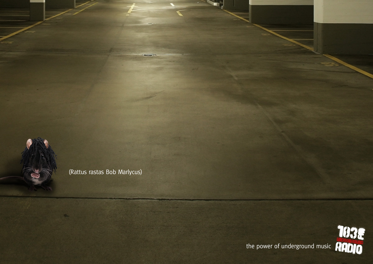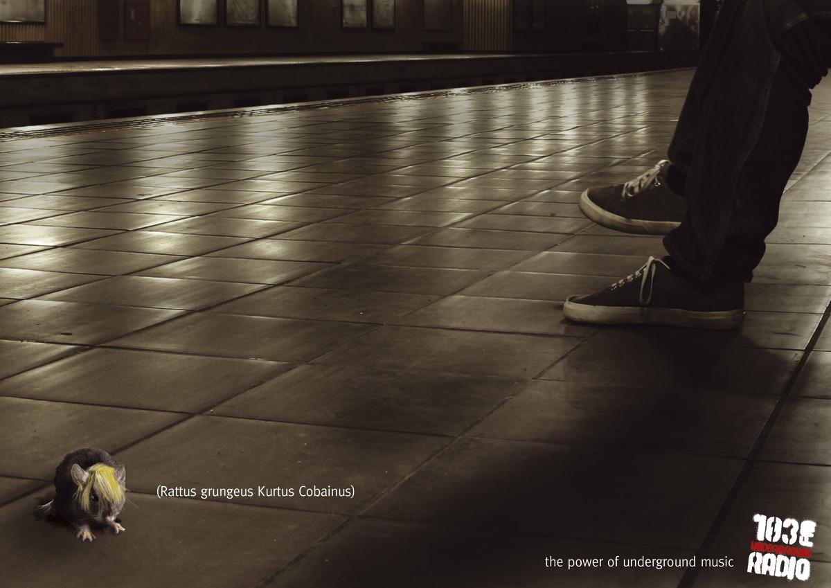 Легендарные крысы в рекламе андеграунд-радио Radio 103Македонская радиостанция Radio 103, как сообщает креативное агентство Newmoment, разработавшее эту рекламную кампанию, транслирует в основном андеграунд-музыку, т.е. такую музыку, которая не поддерживает классические пути. А, как известно, слово "андеграунд" дословно переводится как "подполье", что и натолкнуло создателей на мысль о крысах. В результате, на свет появились такие легендарные грызуны, как Куртус Кобейнус, Боб Марликус и Сидус Вишесикус.Теглайн: "Сила андеграунд-музыки." Агентство: Newmoment, Македония Копирайтер: Ilinska Crvenkovska Дизайнер: Nikola Vojnov Творческий директор: Dushan Drakalski |